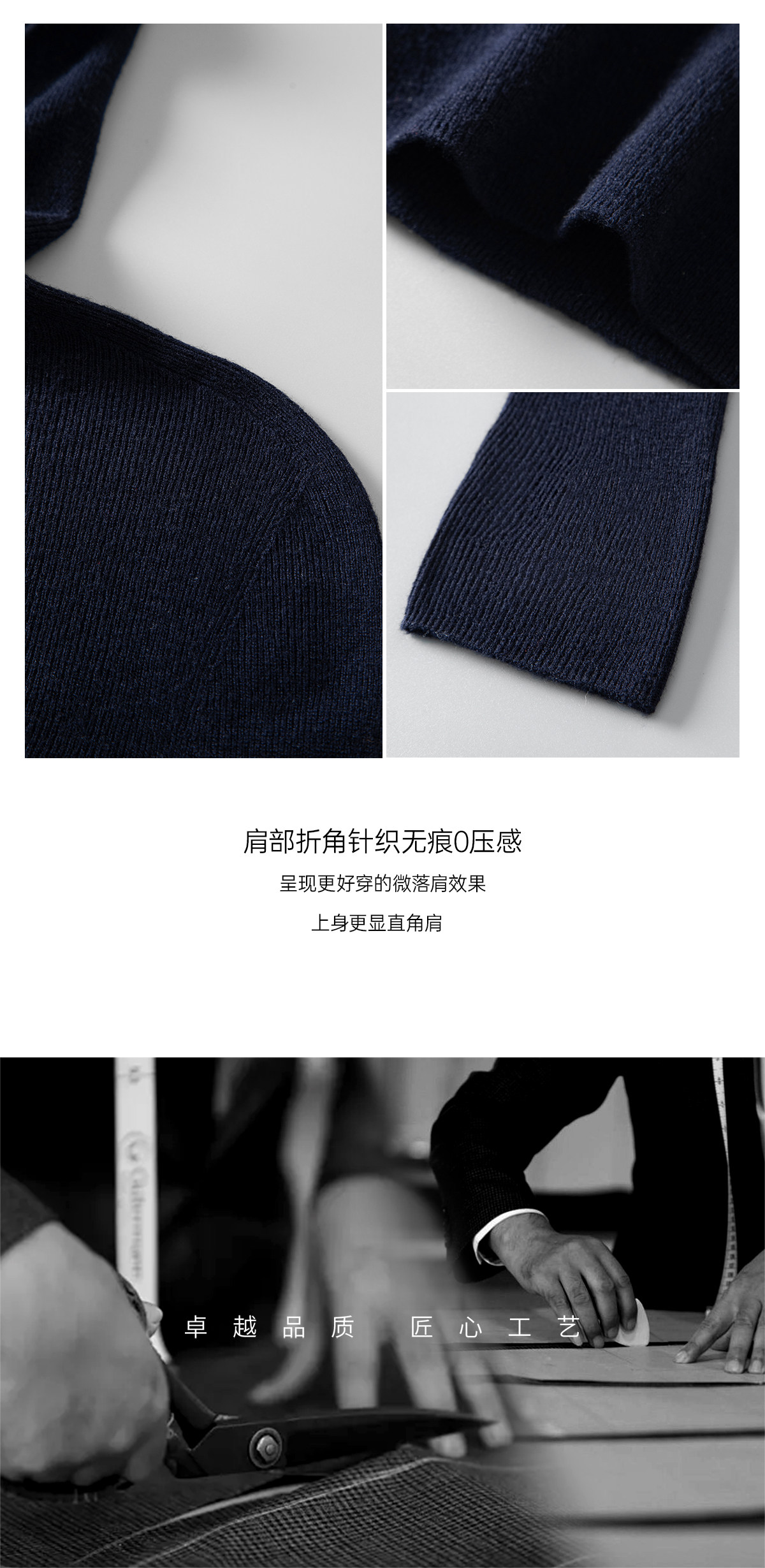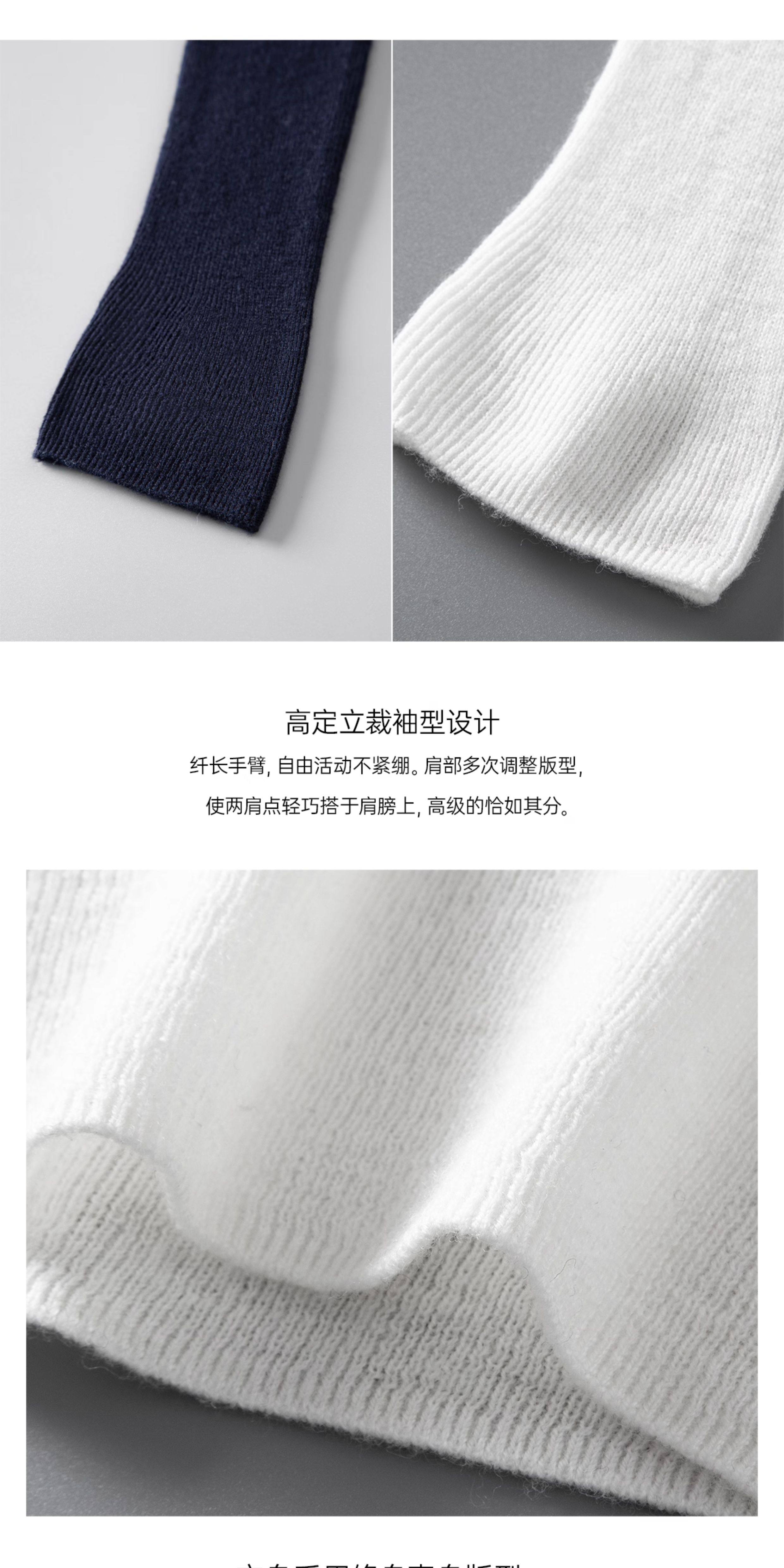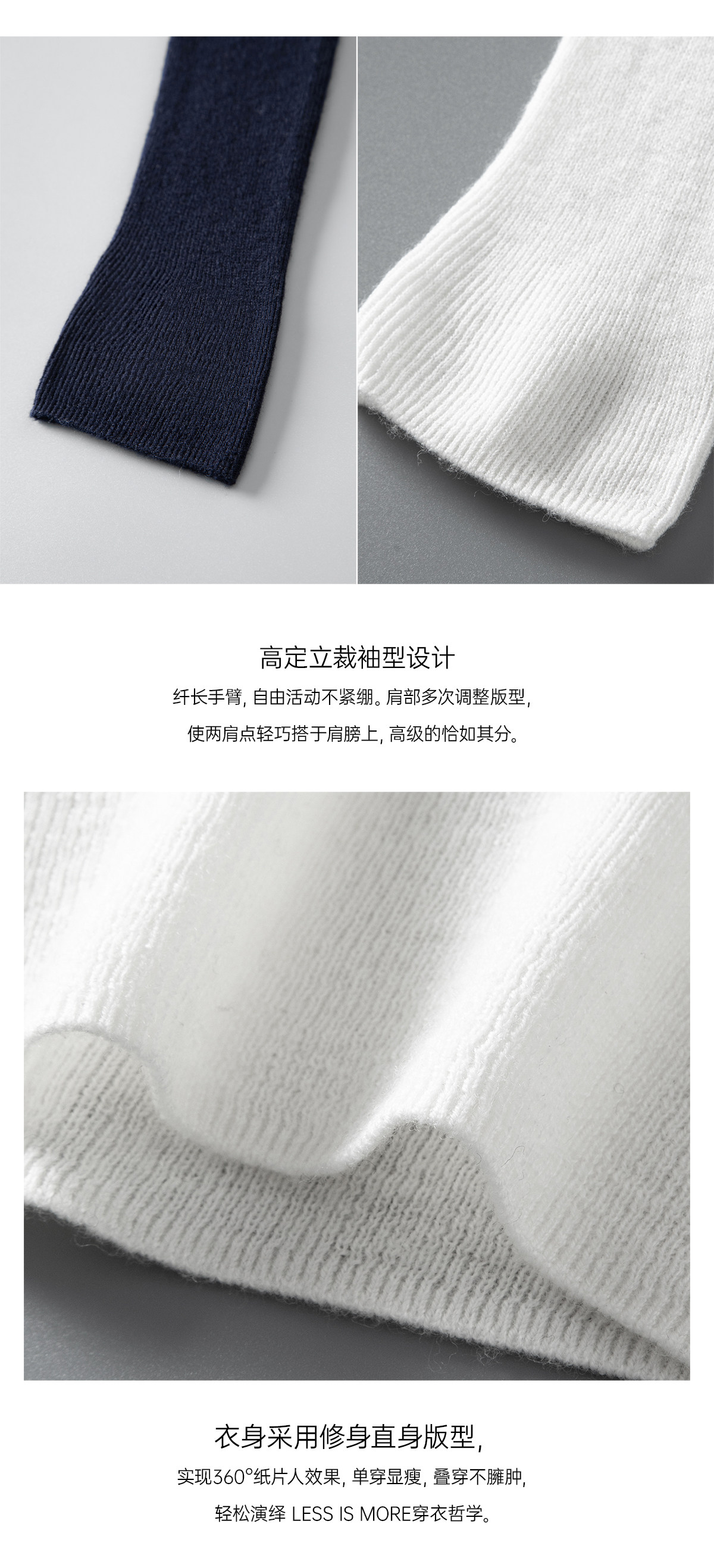 【安所】100%绵羊毛套头款松弛复古连帽修身女士针织内搭打底衫