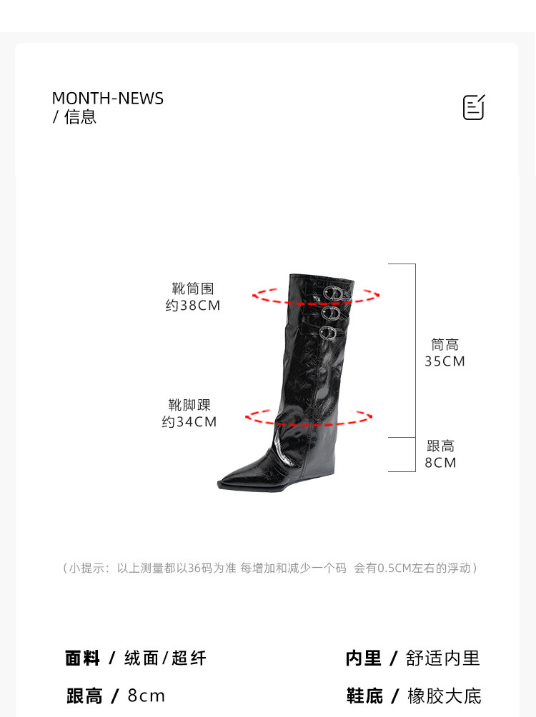 Туфли-ботфорты с заостренным носком и скрытым каблуком, трендовые 2025 года, широкая модель для большого обхвата икры, новый популярный стиль, ботинки на толстом каблуке.