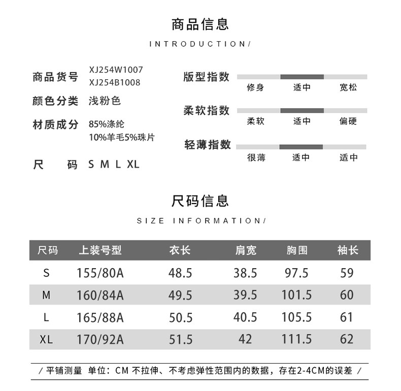 Clasificación de colores Abrigo,falda,Traje (chaqueta 49,5cm + falda larga 83cm)