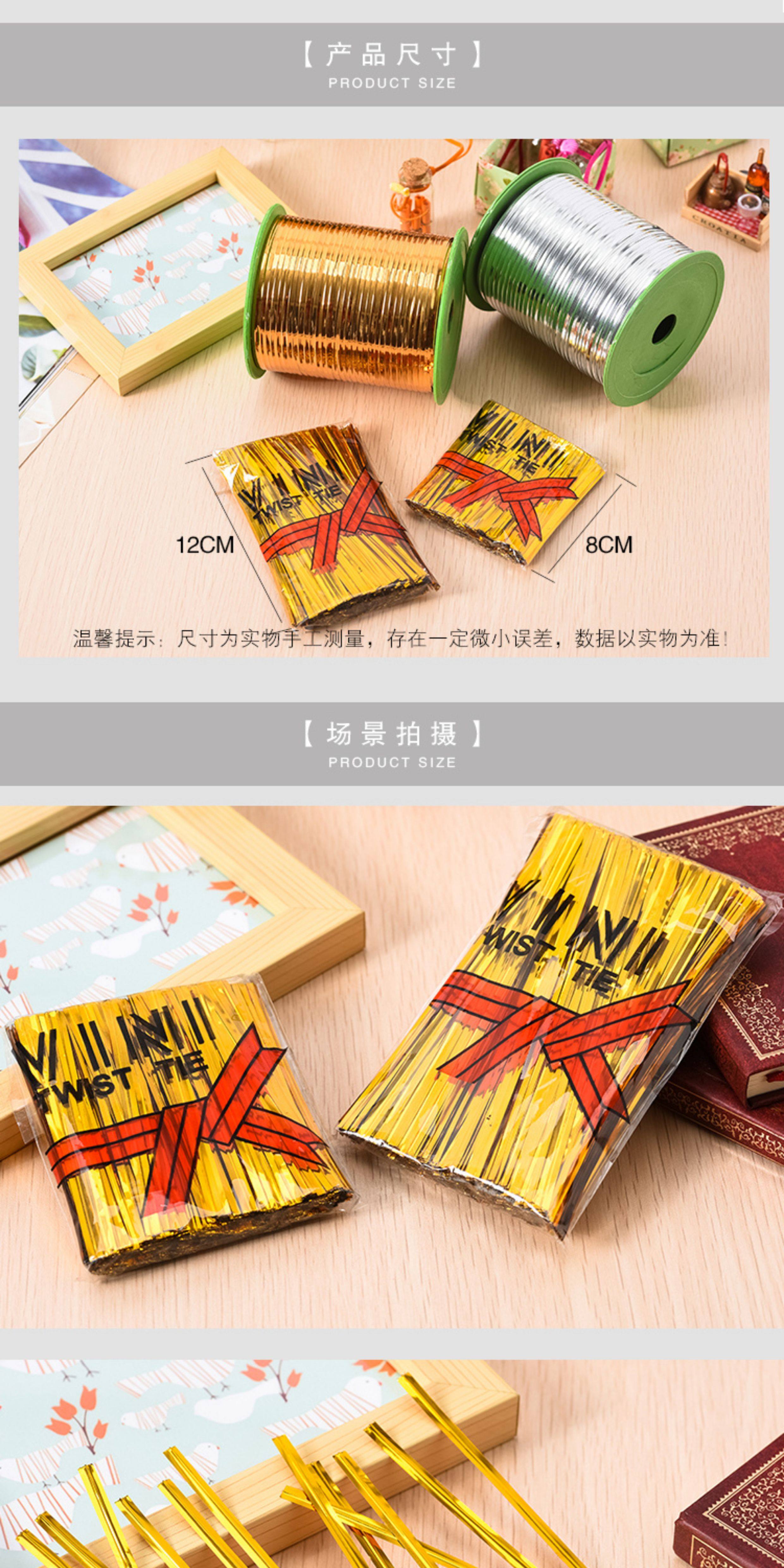 Металлические золотистые и серебристые проволочные зажимы для пакетов с продуктами, подарочных пакетов, хлебных пакетов, конфет и упаковки ручной работы.