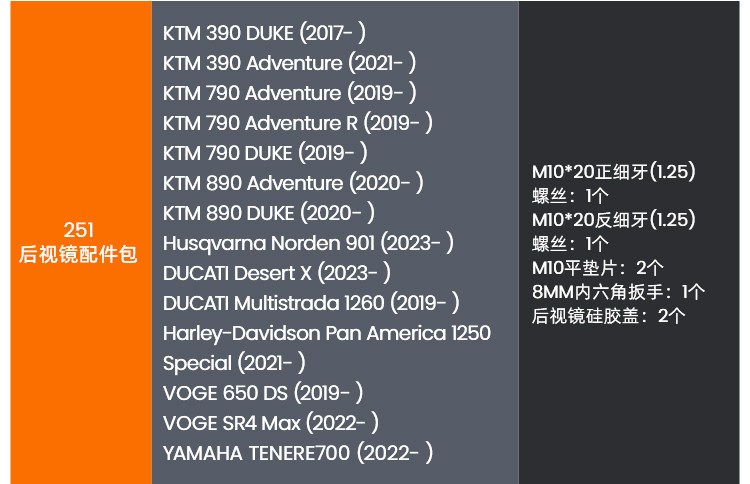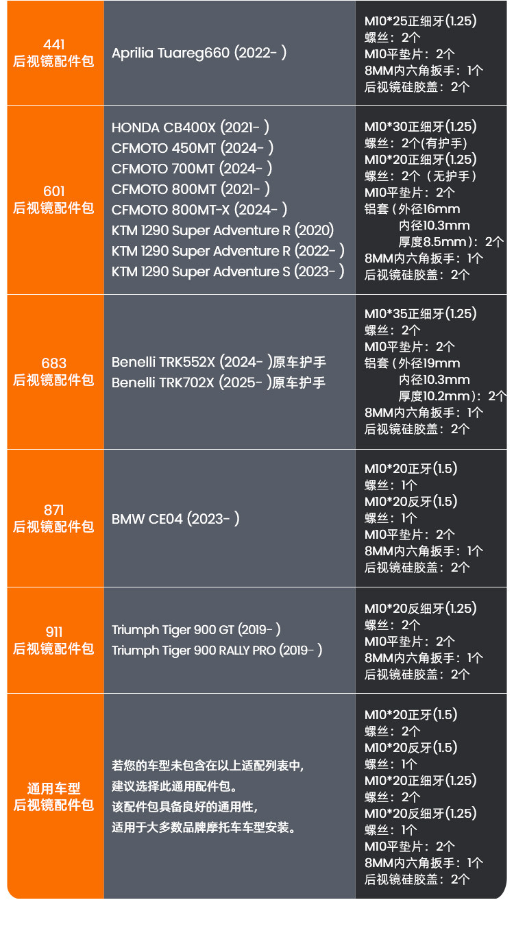 适用摩托车 YAMAHA,HONDA,宝马,KTM