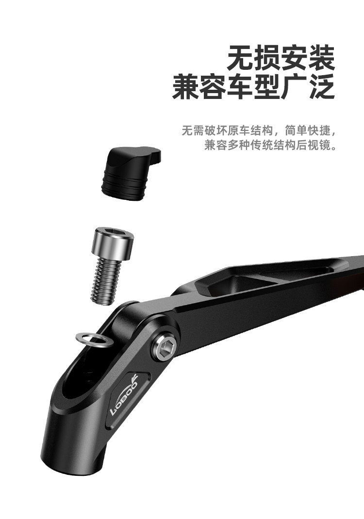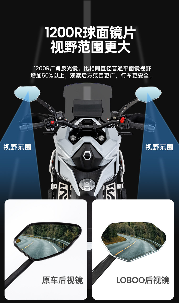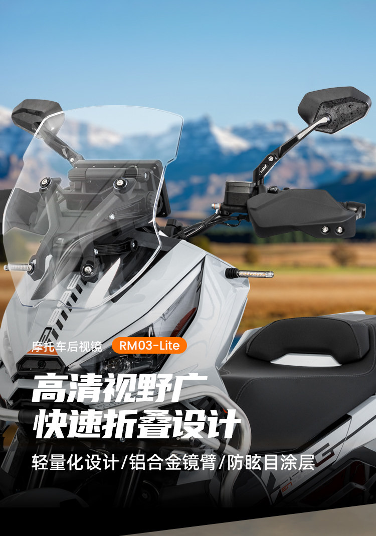 LOBOO萝卜RM03铝合金可折叠后视镜宝马本田春风摩托大视野反光镜