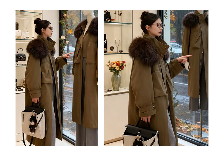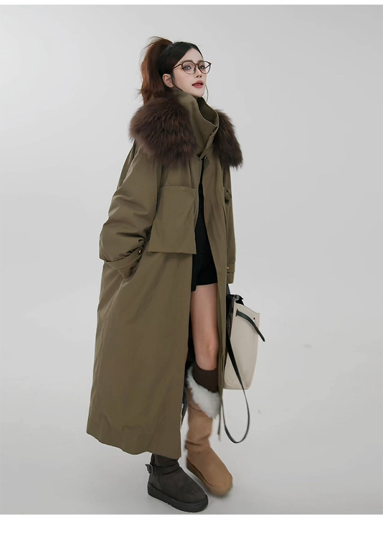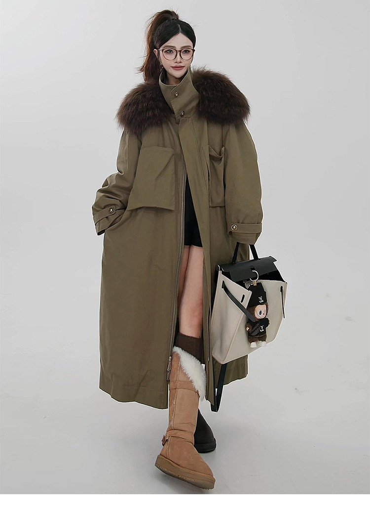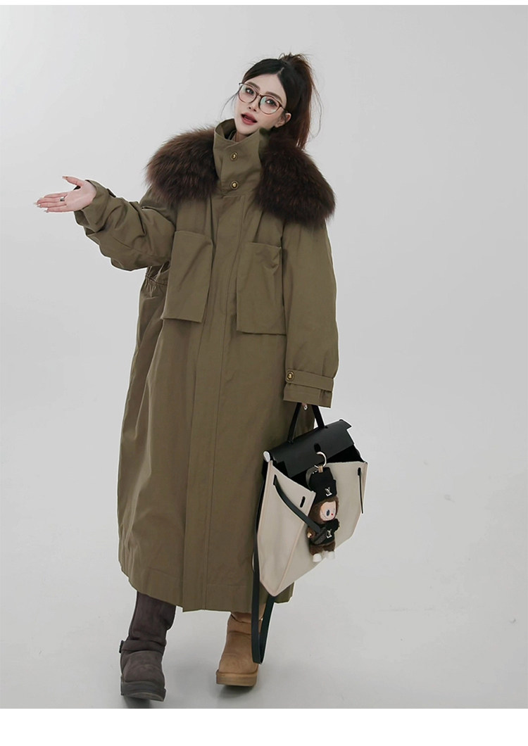 原创设计感大毛领工装羽绒服女2025冬新款风衣外套中长款休闲大衣