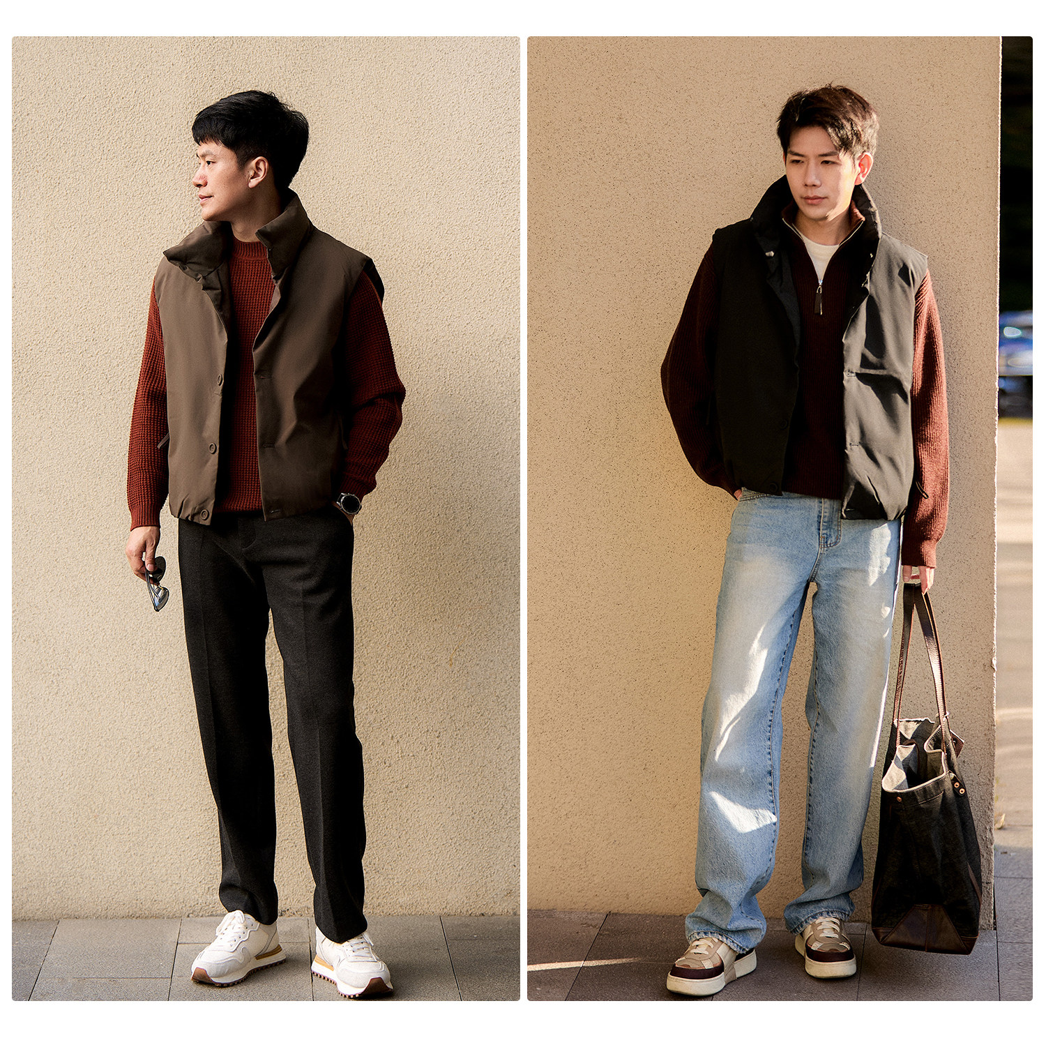 Urban fashion, warm and stylish pioneer, multi-scenario wear! Fashionable stand-up collar men's down vest new for autumn and winter@