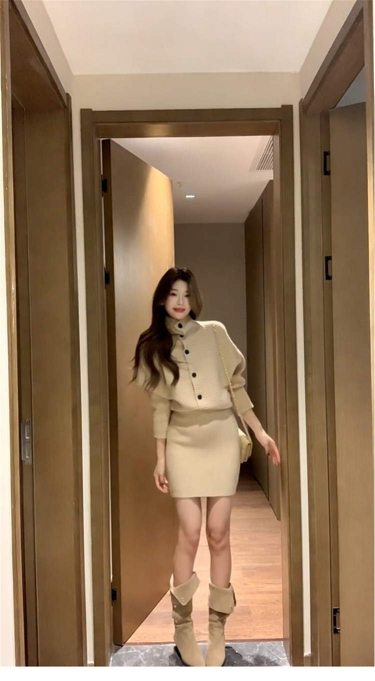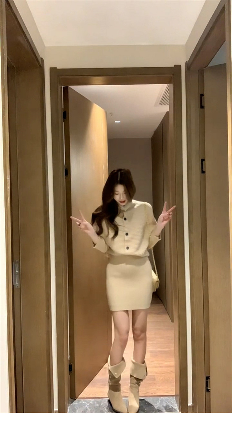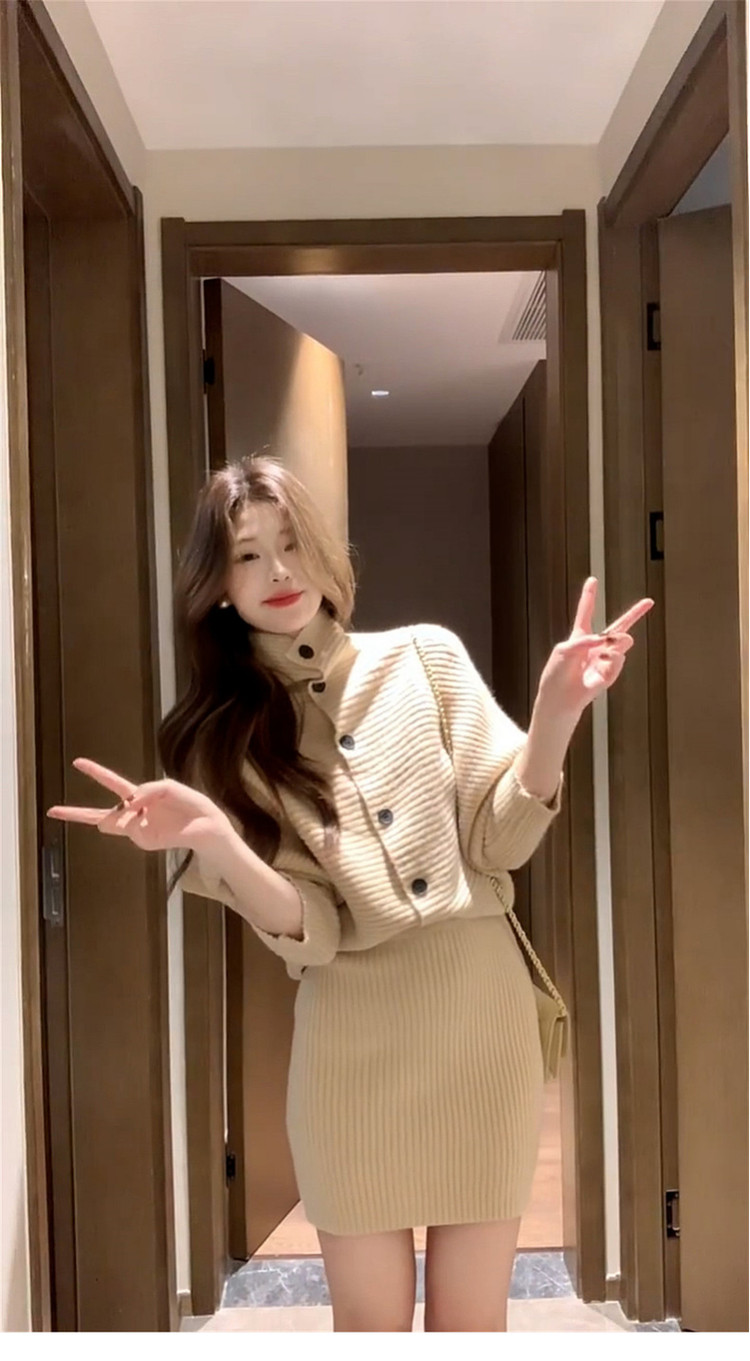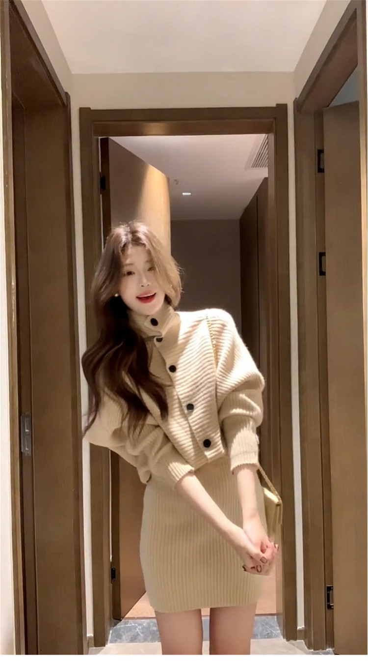 Estilo coreano pequeño estilo fragante suéter de cuello alto traje falda mujeres 2026 nuevo conjunto completo de ropa de invierno único y hermoso