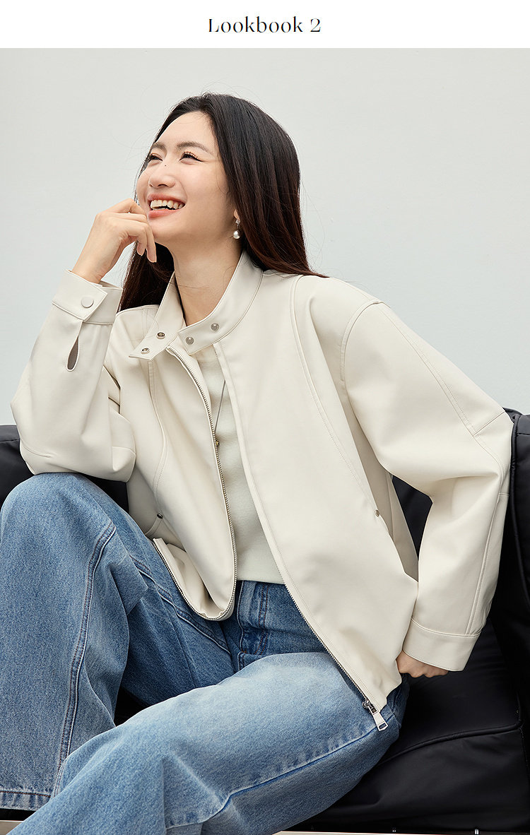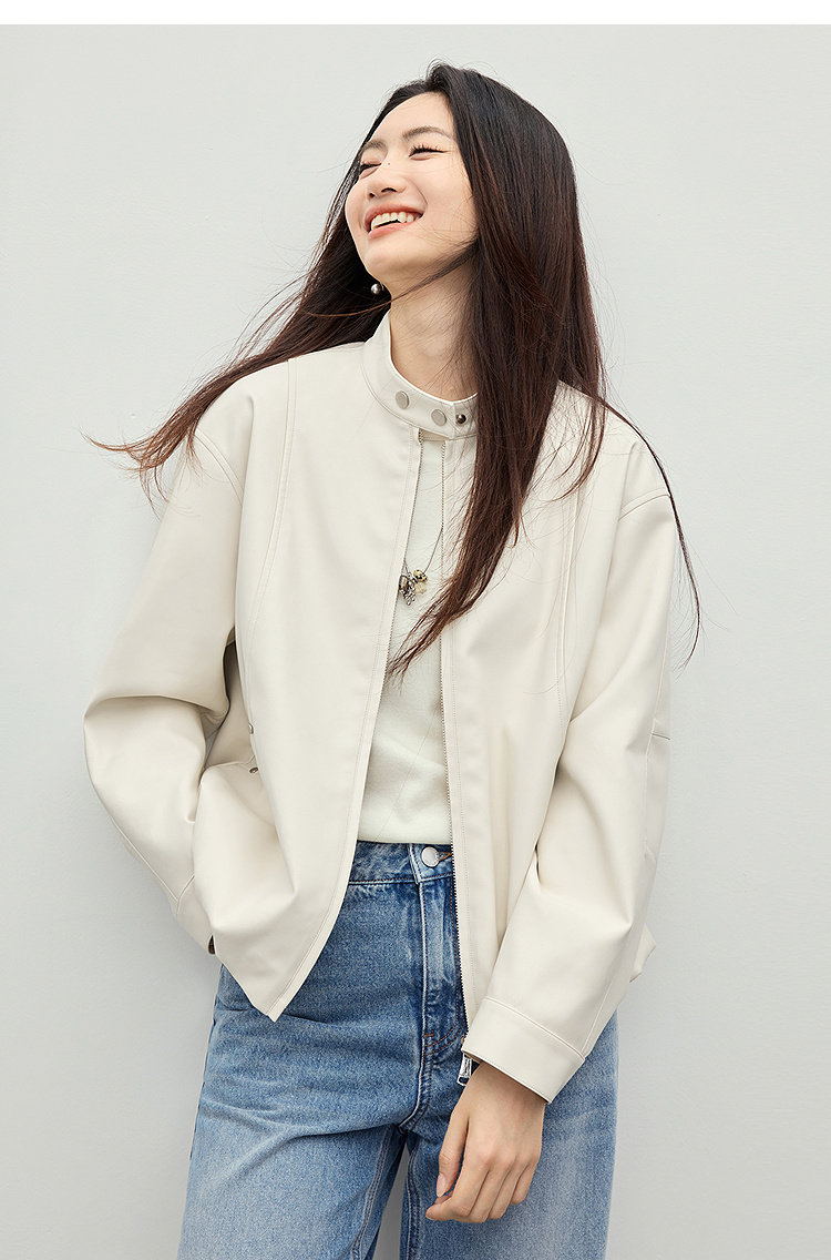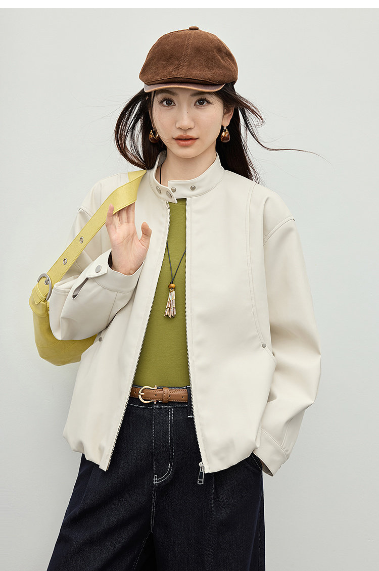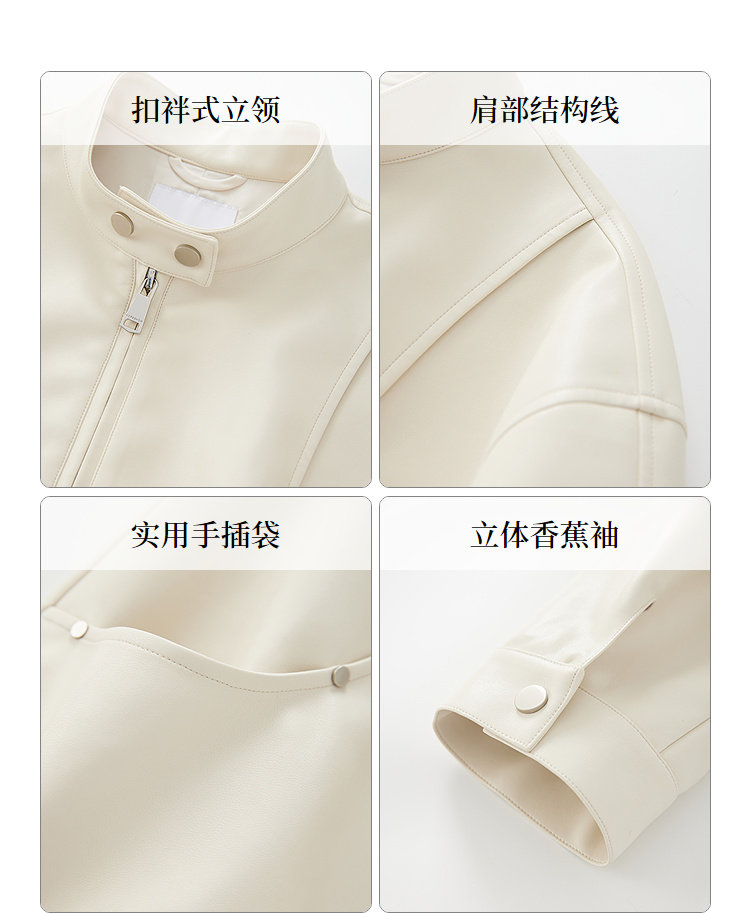 Chaqueta de cuero de la PU de la motocicleta del temperamento de la manga roja 2026 abrigo corto tridimensional del collar del soporte de la manga del plátano del brote tridimensional de las nuevas mujeres
