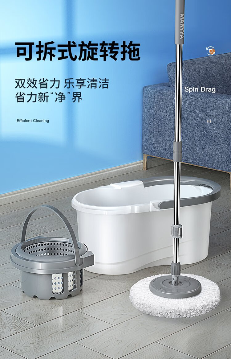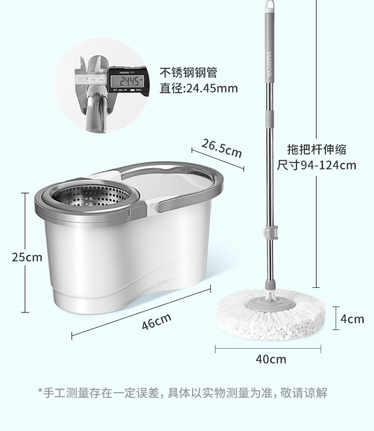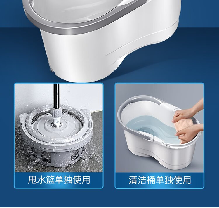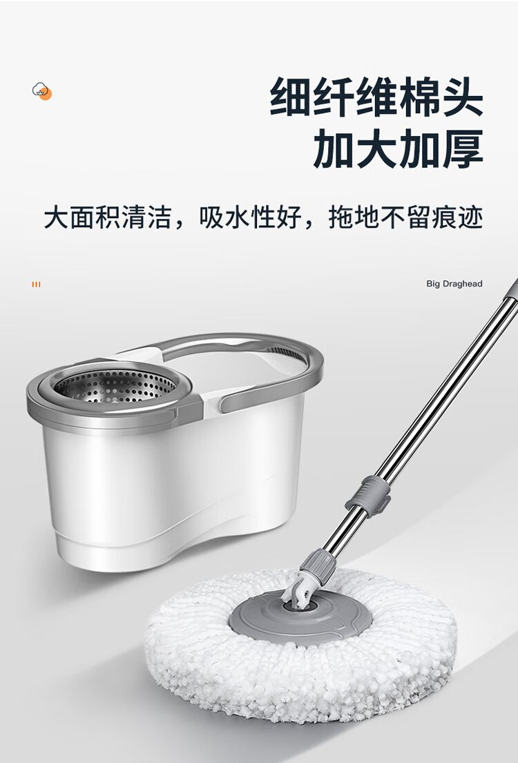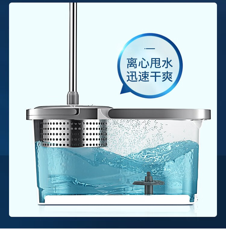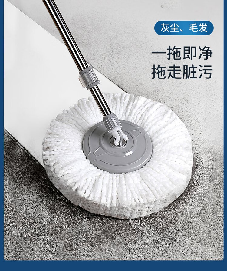 美丽雅旋转拖把40cm伸缩杆2拖布带桶墩布干湿两用一拖净免手洗家用墩布