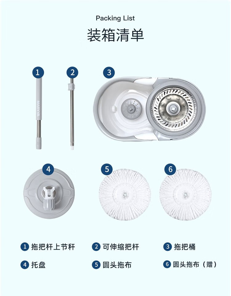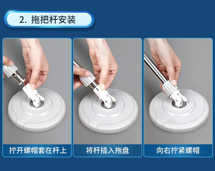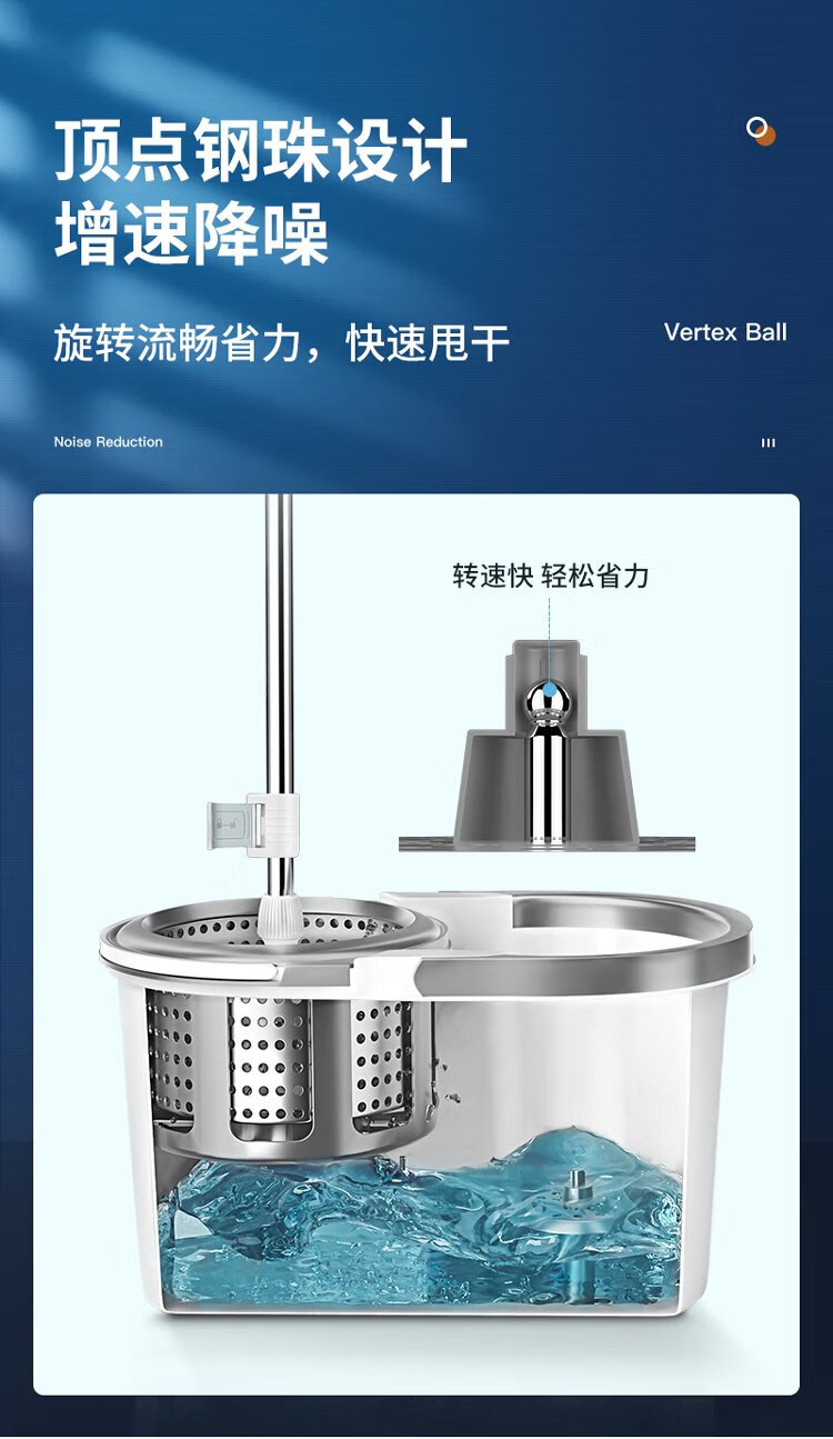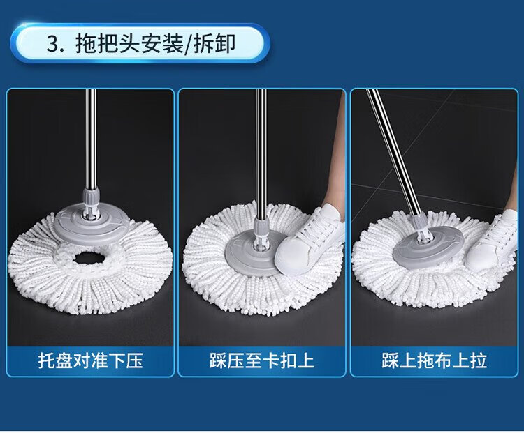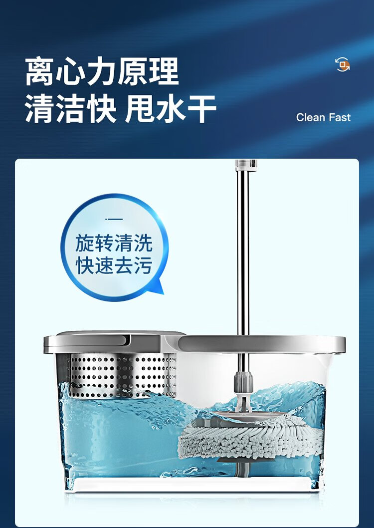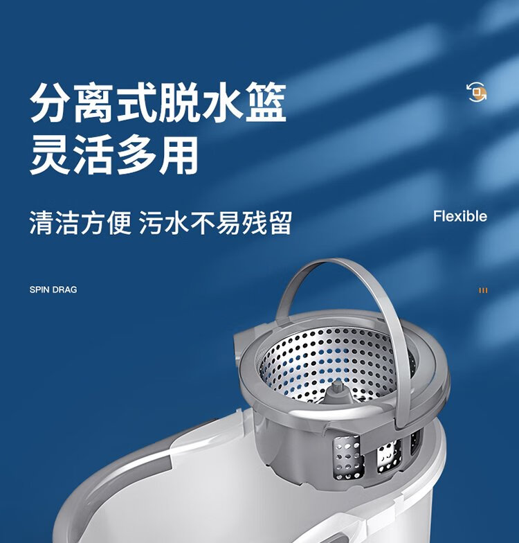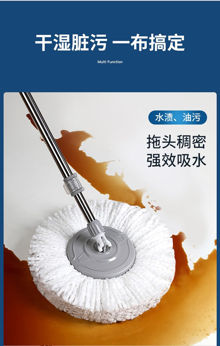 美丽雅旋转拖把40cm伸缩杆2拖布带桶墩布干湿两用一拖净免手洗家用墩布