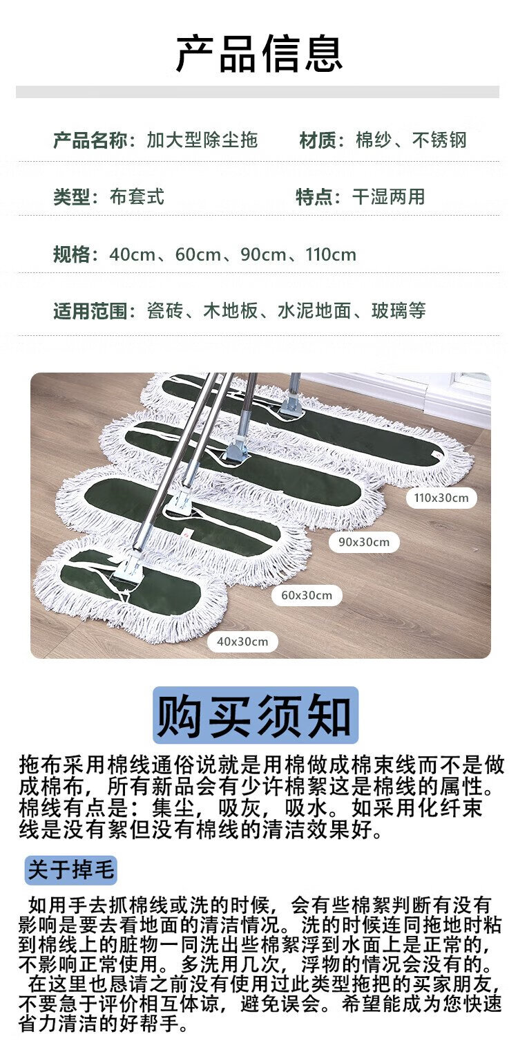 Meijia Life Tablet Mop, 90CM wide, total 1 piece of cloth, cotton yarn, large dust pusher, home hotel cleaning floor mop