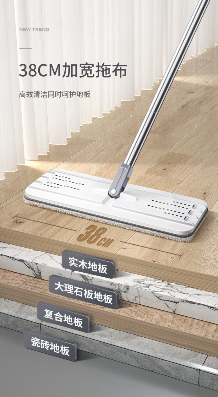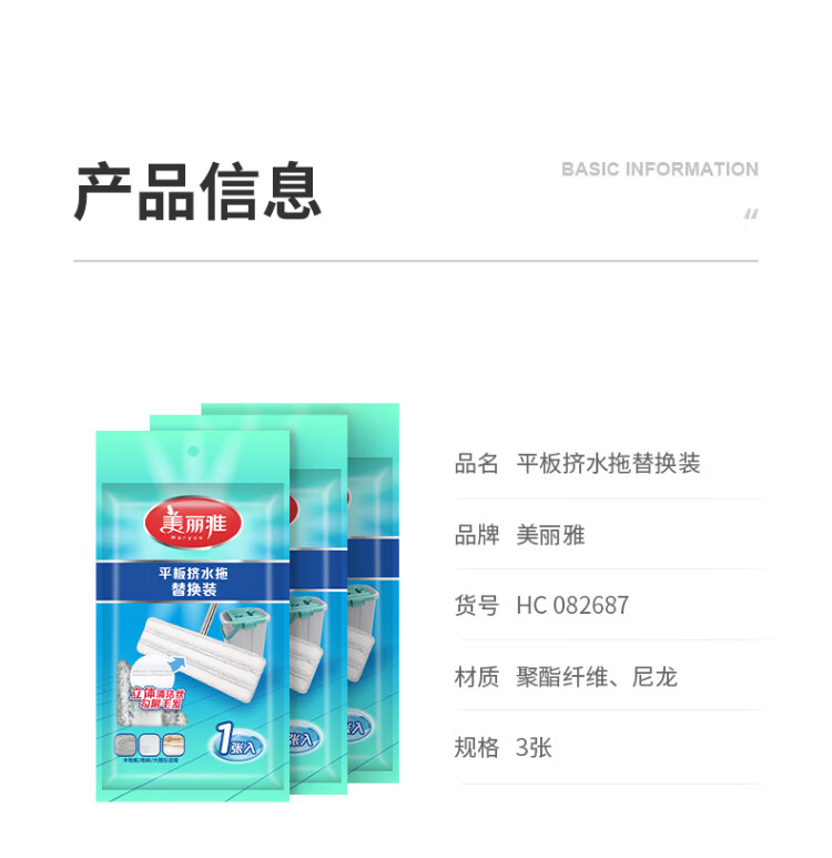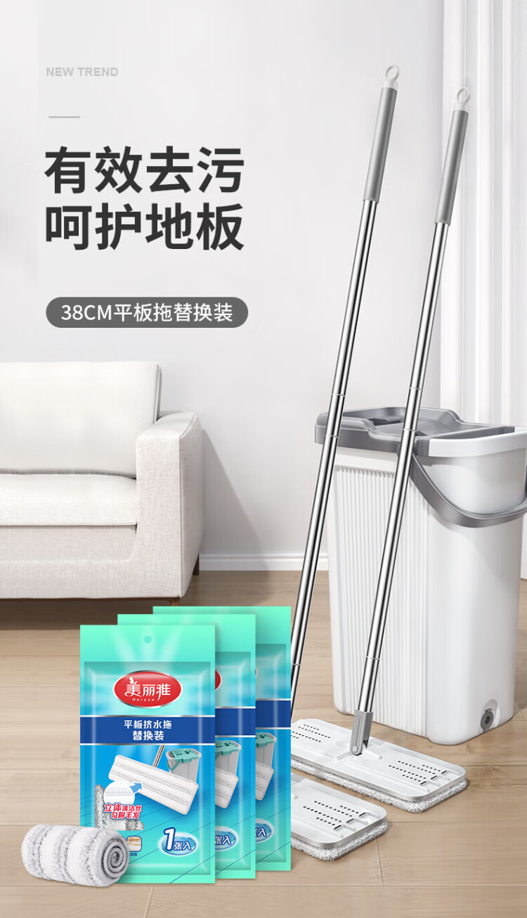 美丽雅洗刷刷平板拖把替换布38cm3片装适用于洗刷刷拖把替换头备件