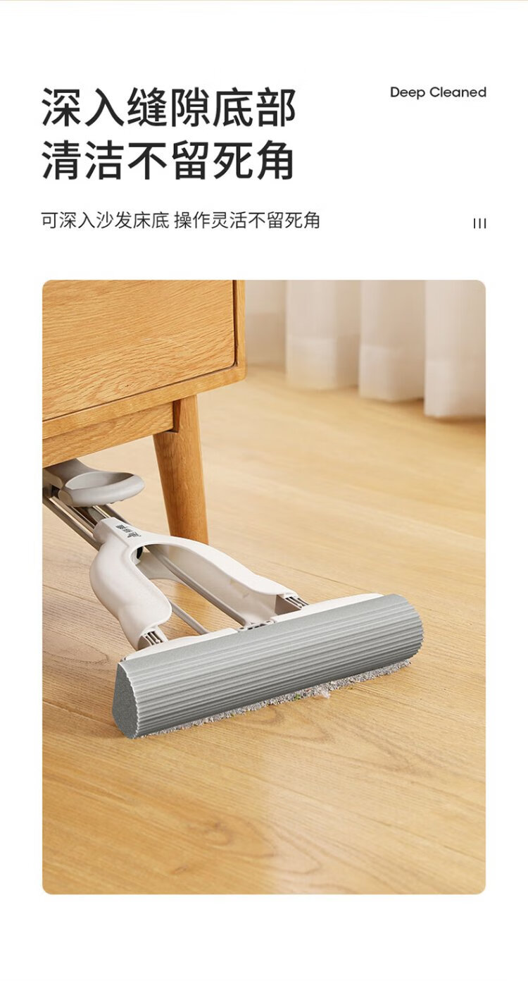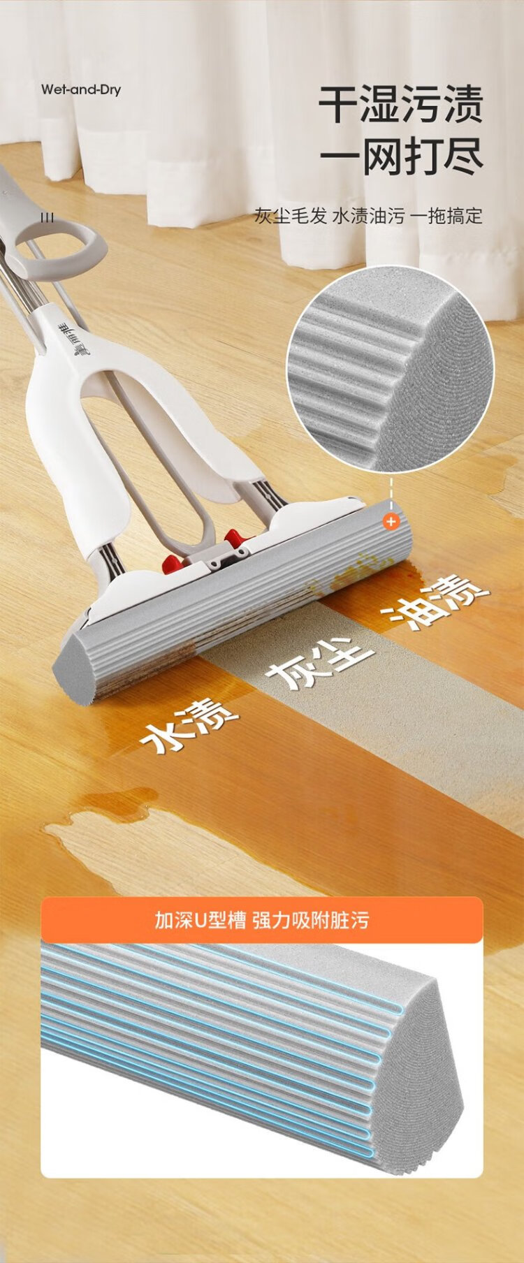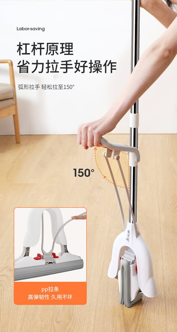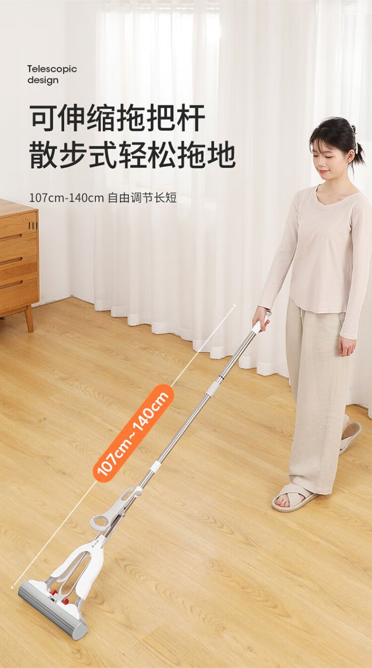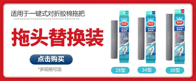 美丽雅胶棉拖把28cm2拖头吸水海绵一键卸头免手洗一拖净2025干湿两用