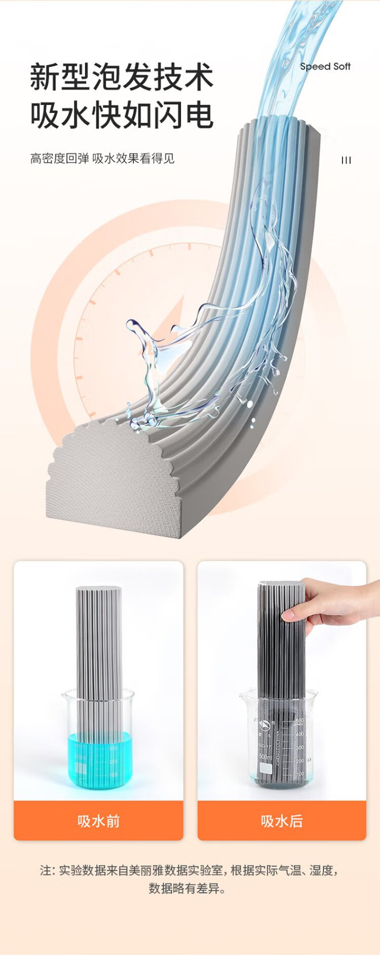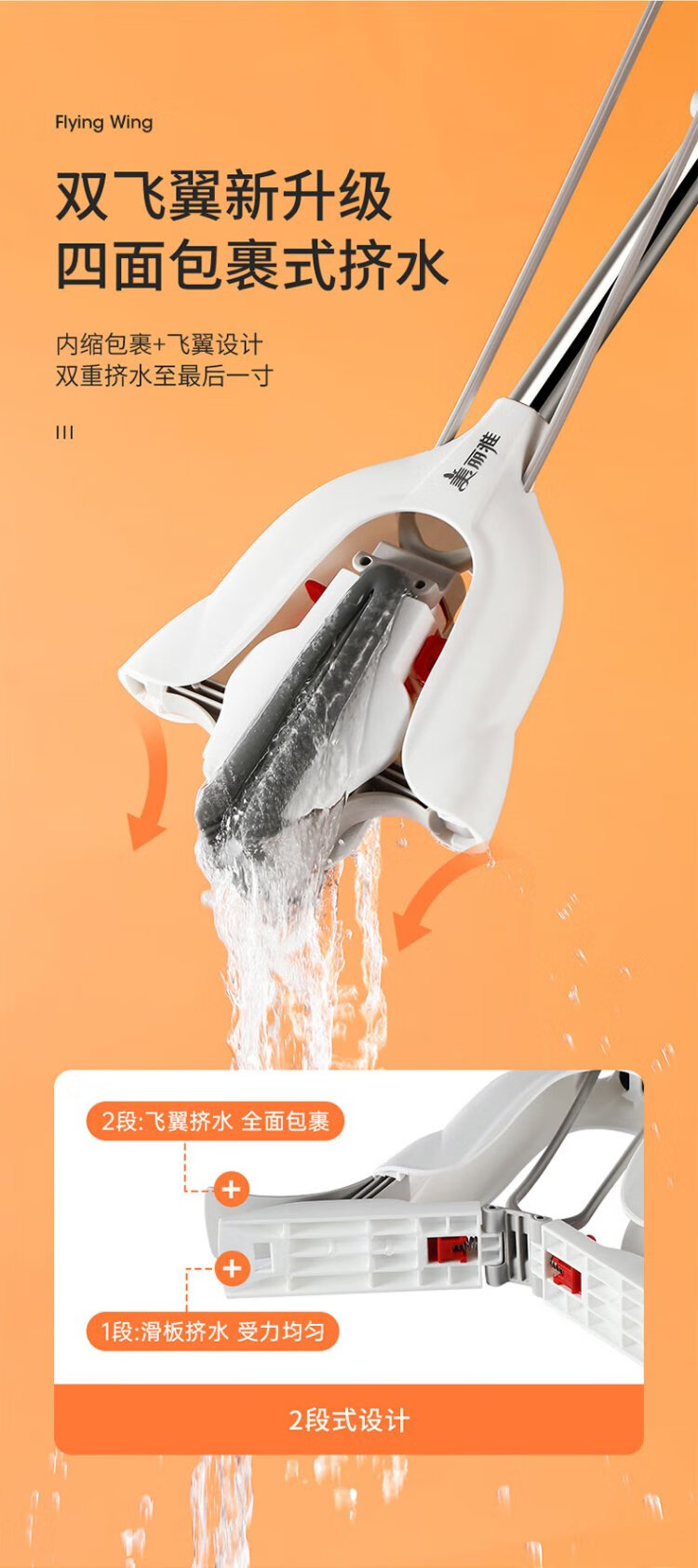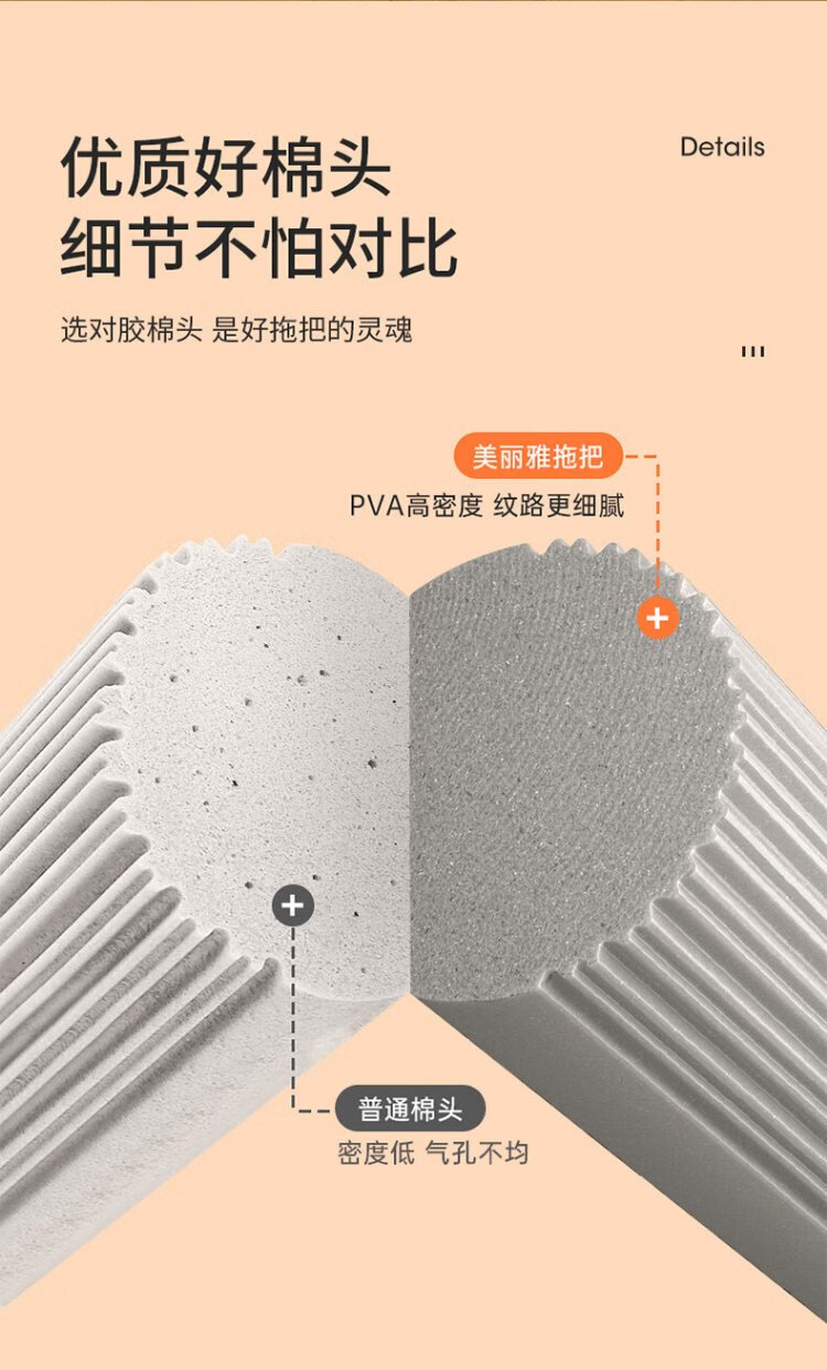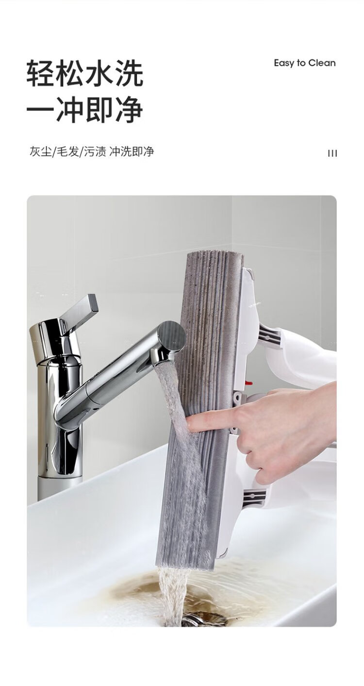 美丽雅胶棉拖把28cm2拖头吸水海绵一键卸头免手洗一拖净2025干湿两用