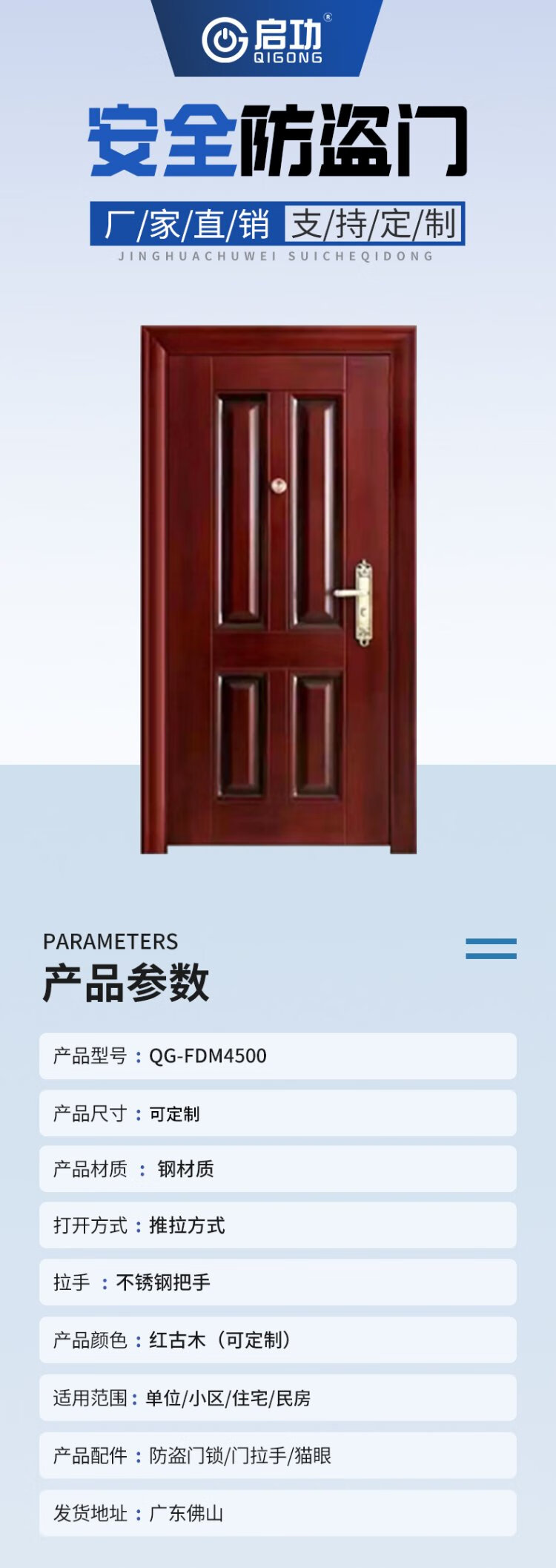 Стальная противоугонная дверь Цигун, защитная дверь, входная дверь, входная дверь QG-FDM4500