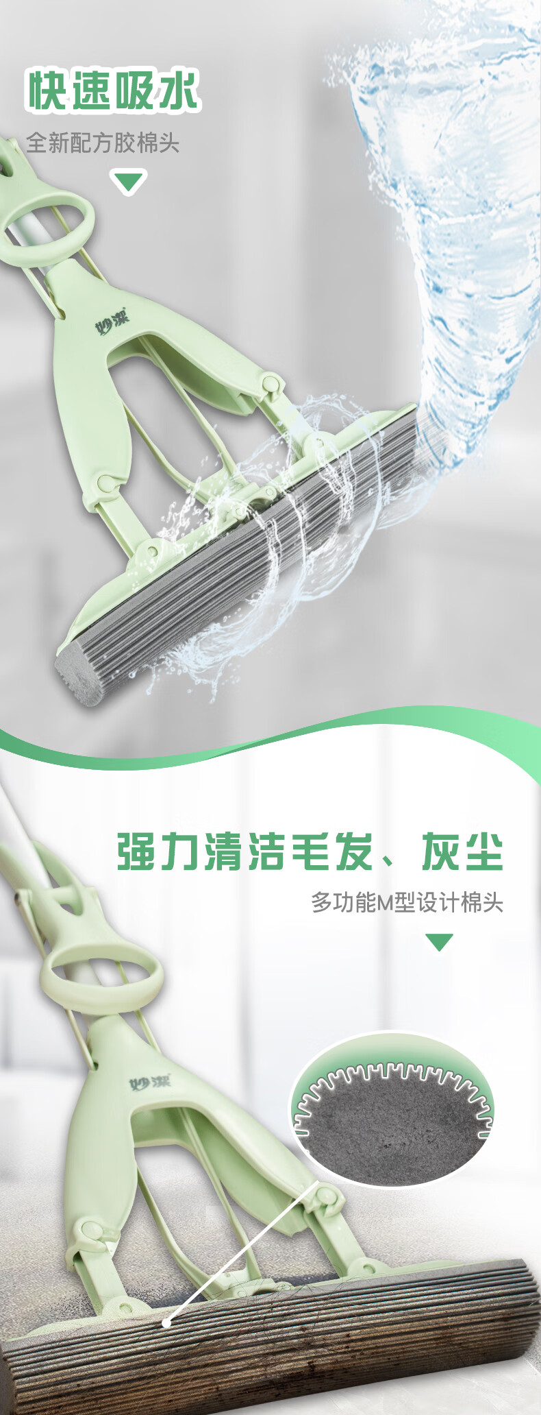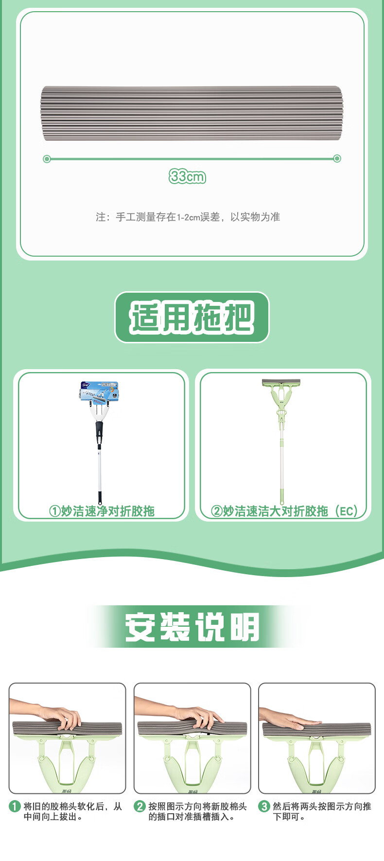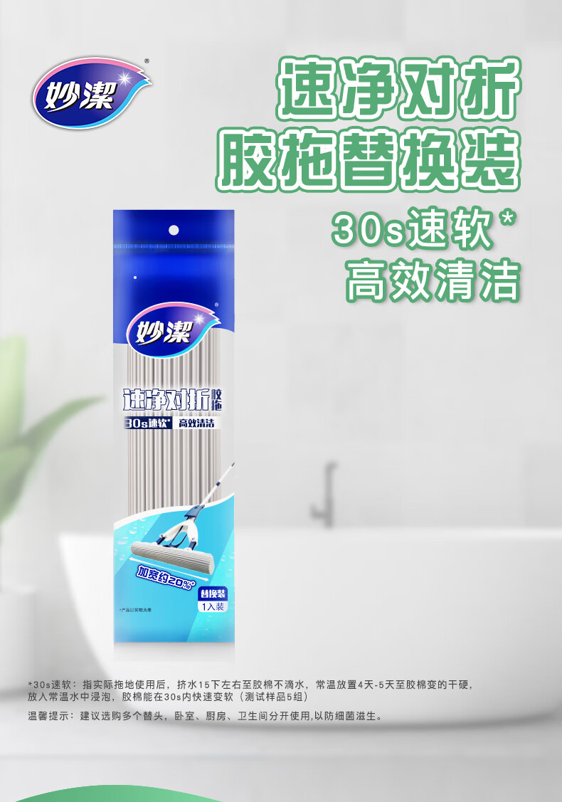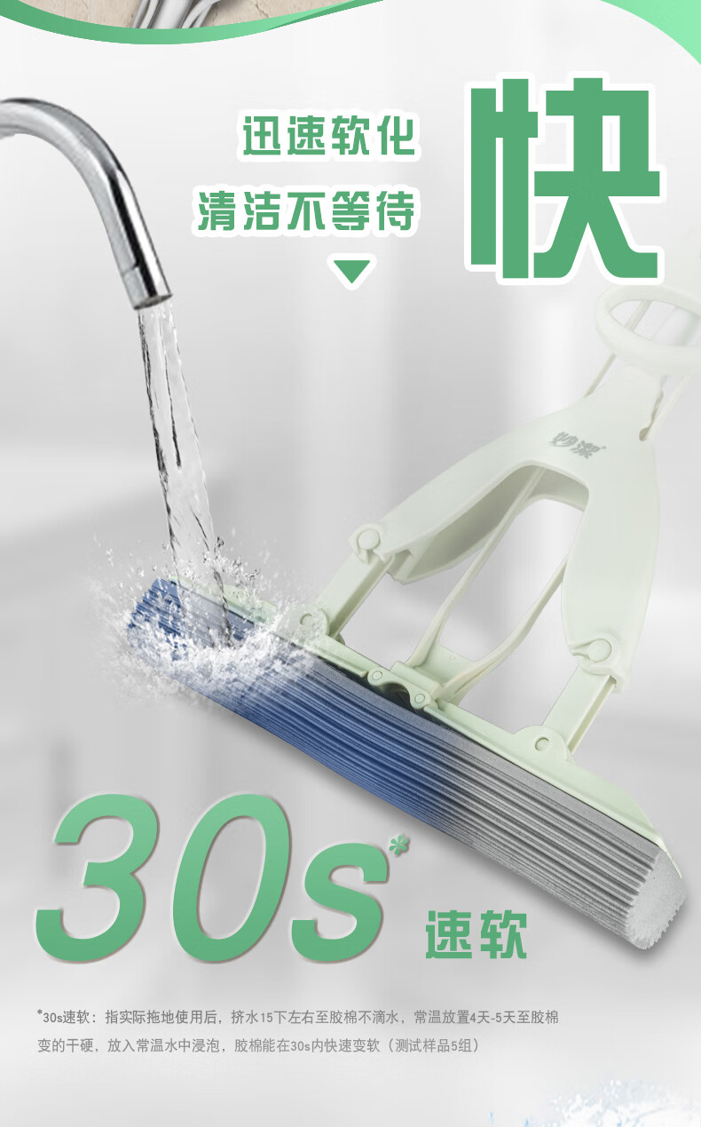 Насадка для швабры Miaojie с коллодием, 33 см, всего 1 складная быстроочищающаяся складная сменная клеевая швабра, 30S, мягкая губка со скоростью