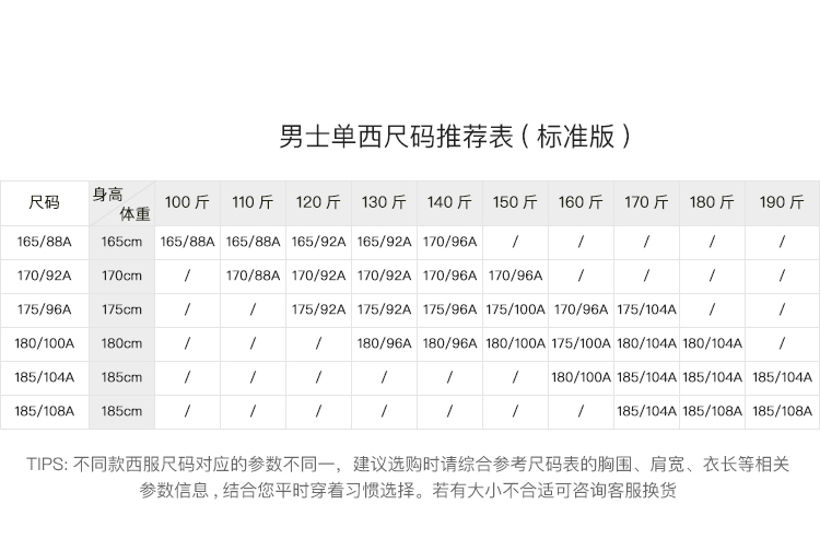 China (cm) 160-165/84-86 165-170 / 88-90 167-172 / 92-96 168-173 / 98-102 170-176 / 106-110