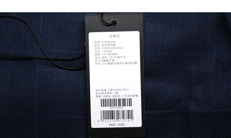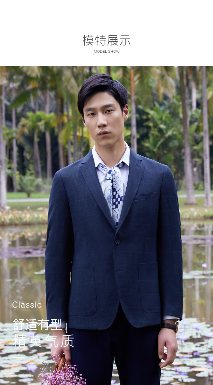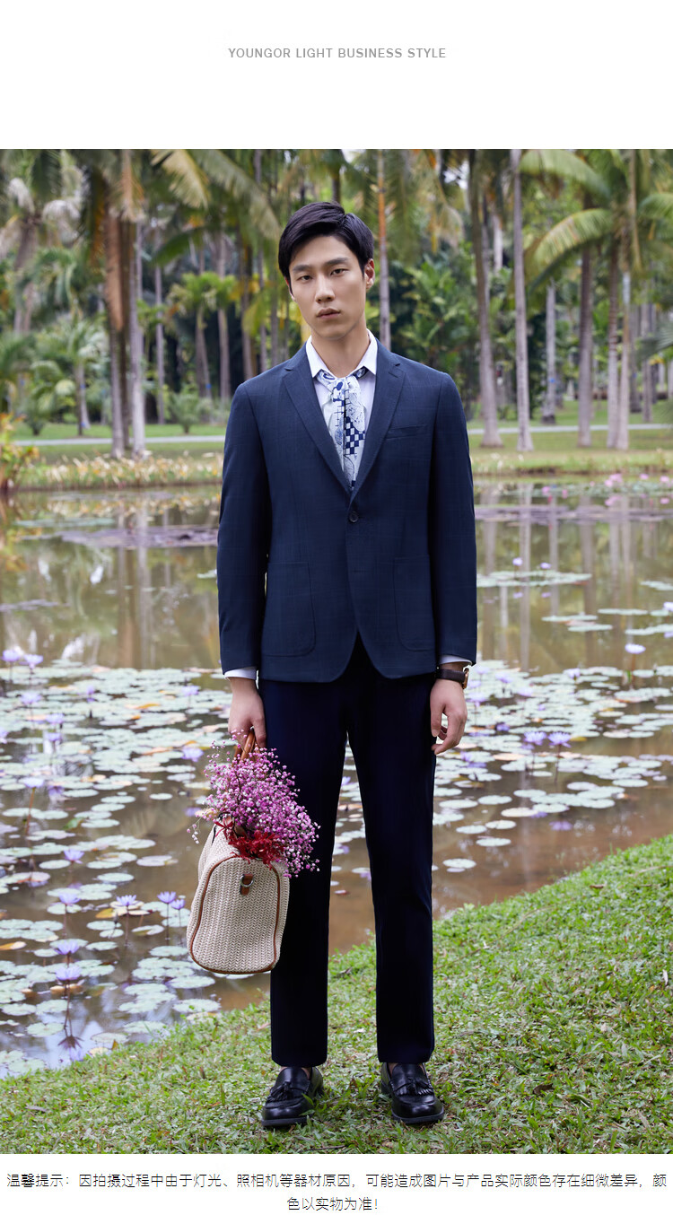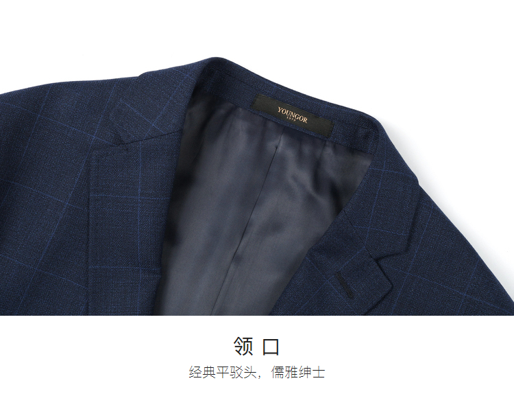 雅戈尔西服春秋季商务休闲时尚羊毛格纹西服外套 藏青 XL(180/100A)