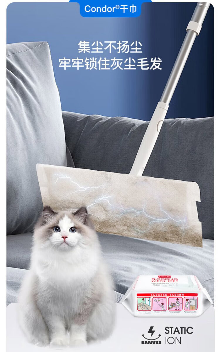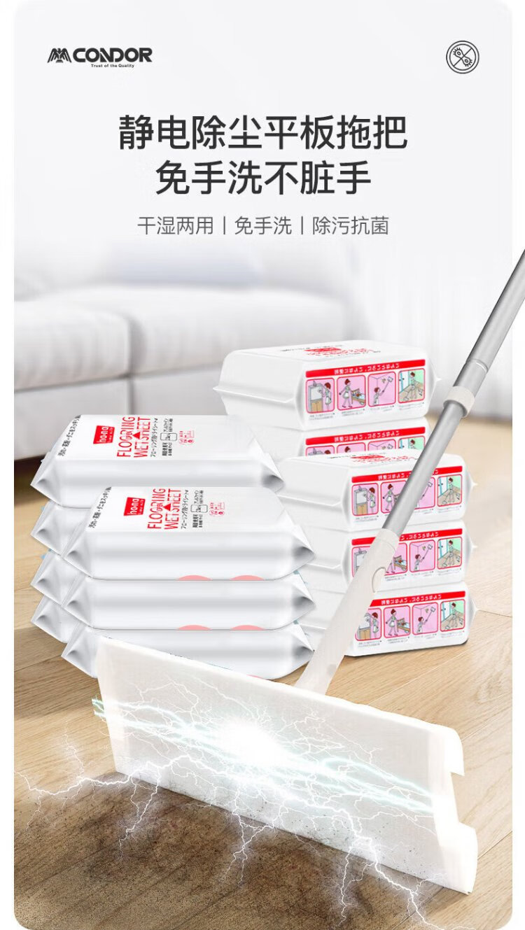 CONDOR Papier de dépoussiérage électrostatique japonais 3 paquets de 90 pièces vadrouille de dépoussiérage à adsorption paresseuse vadrouille jetable papier sous vide serviette sèche