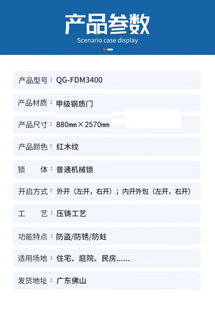 Блок защитной двери Qigong, жилая стальная входная защитная дверь QG-FDM3400