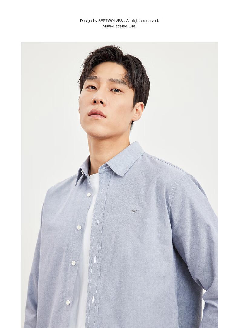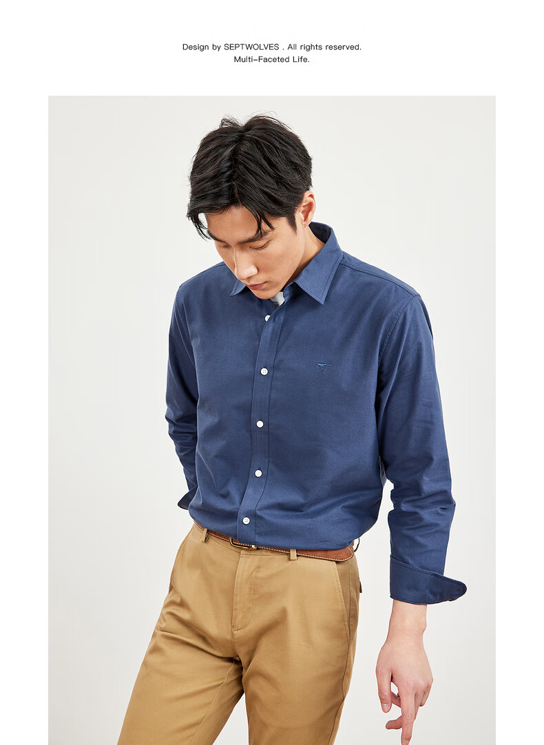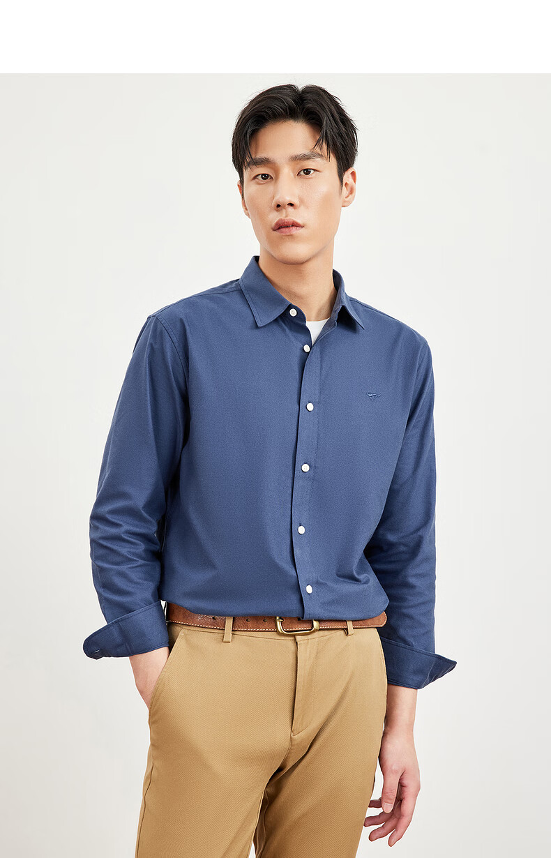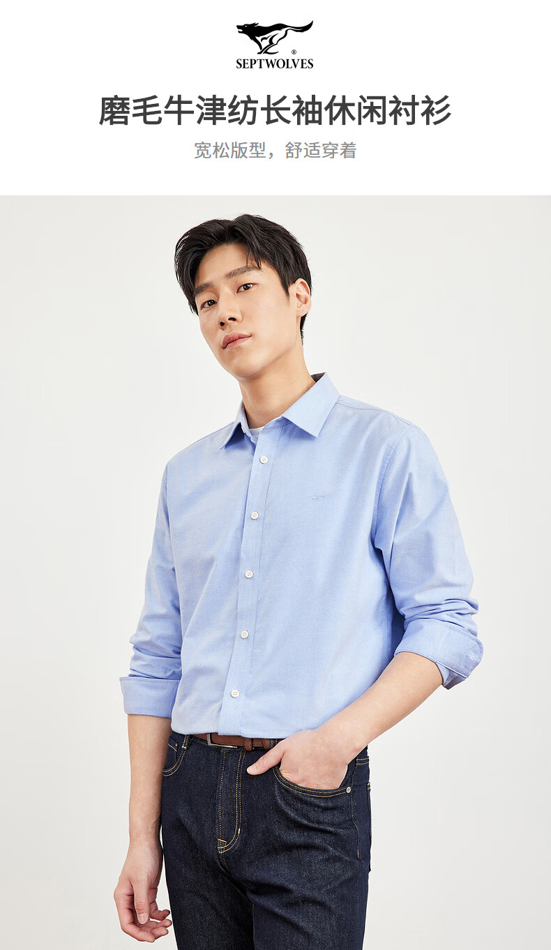 七匹狼长袖衬衫男士秋季纯棉磨毛牛津纺商务休闲职业衬衣男上装
