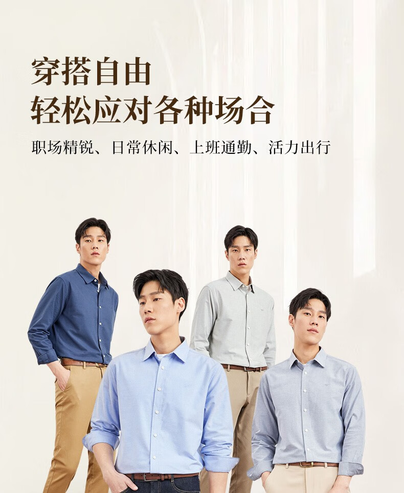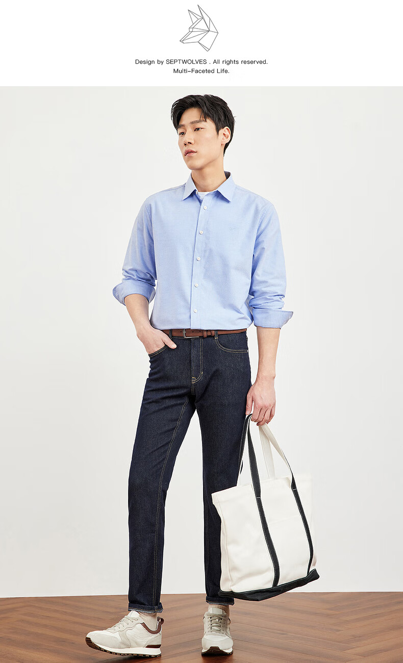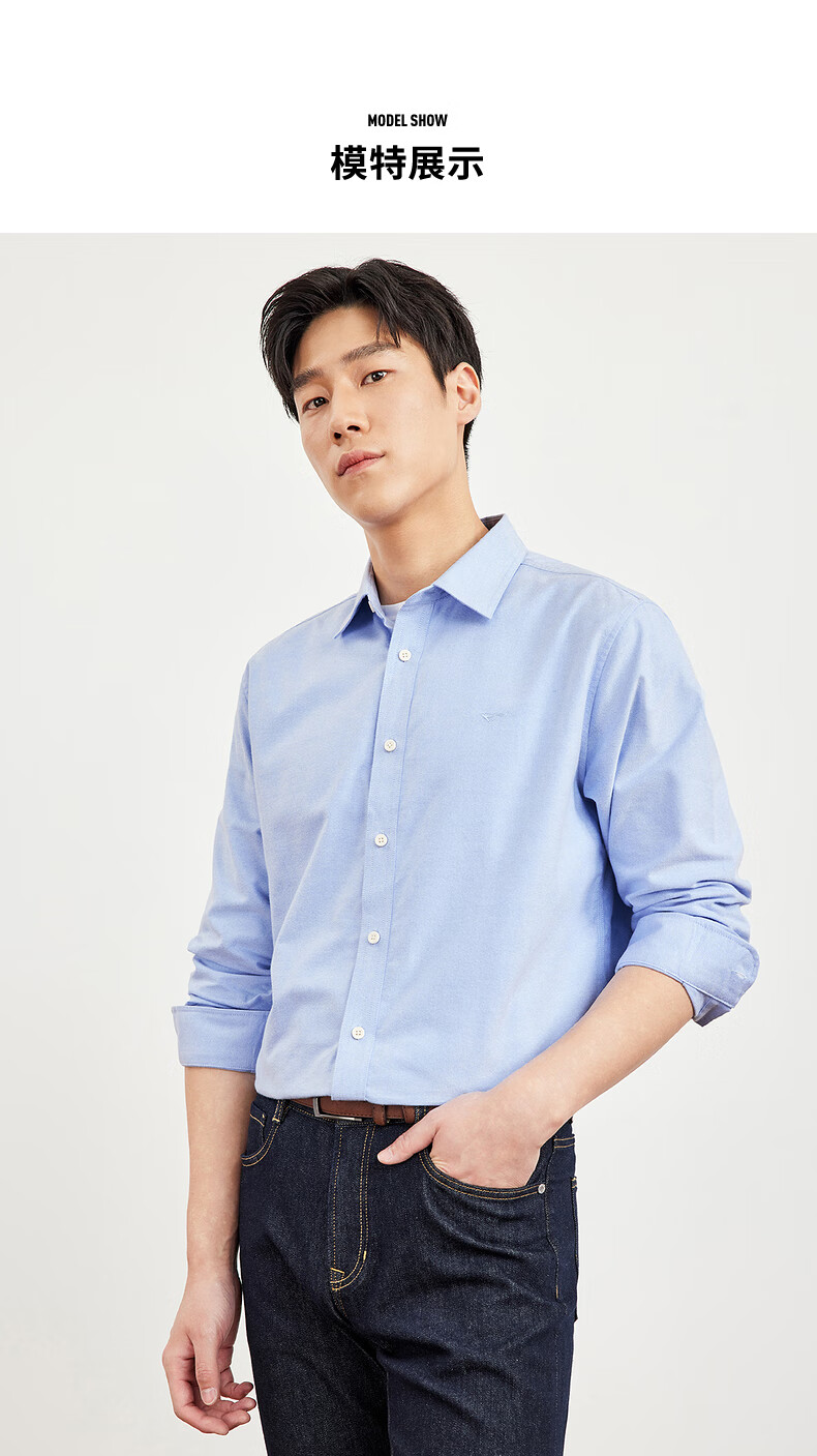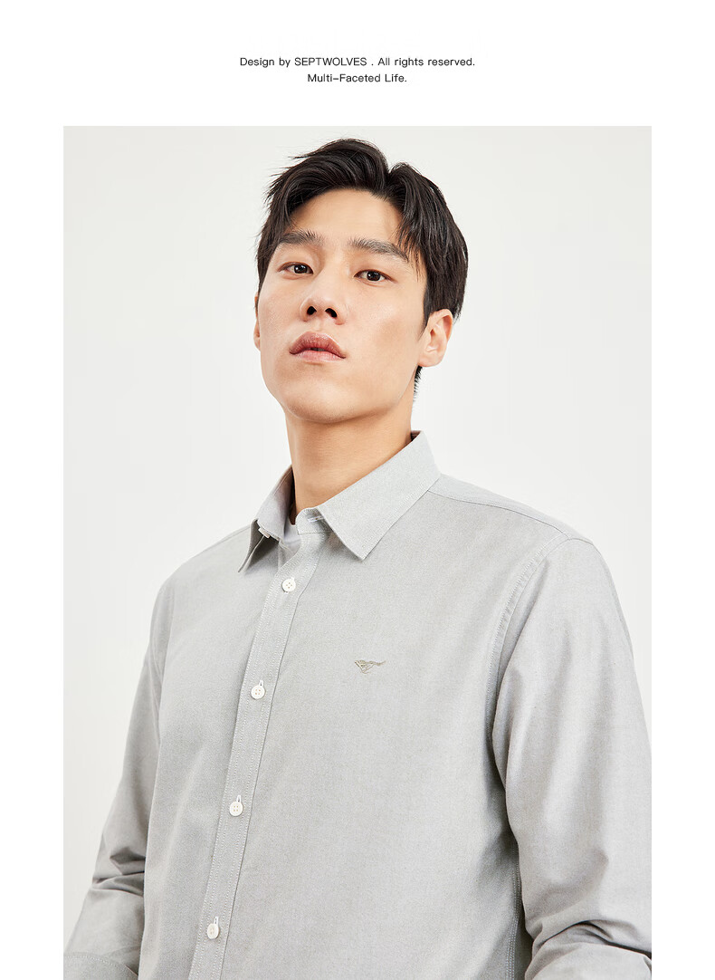 七匹狼长袖衬衫男士秋季纯棉磨毛牛津纺商务休闲职业衬衣男上装