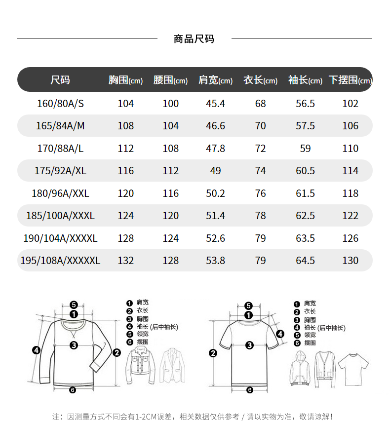 China (cm) 160-165/84-86 165-170 / 88-90 167-172 / 92-96 168-173 / 98-102 170-176 / 106-110