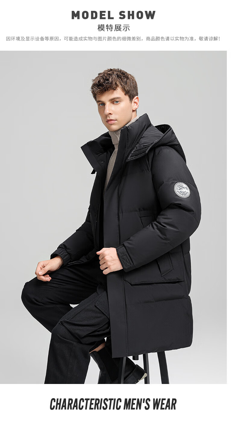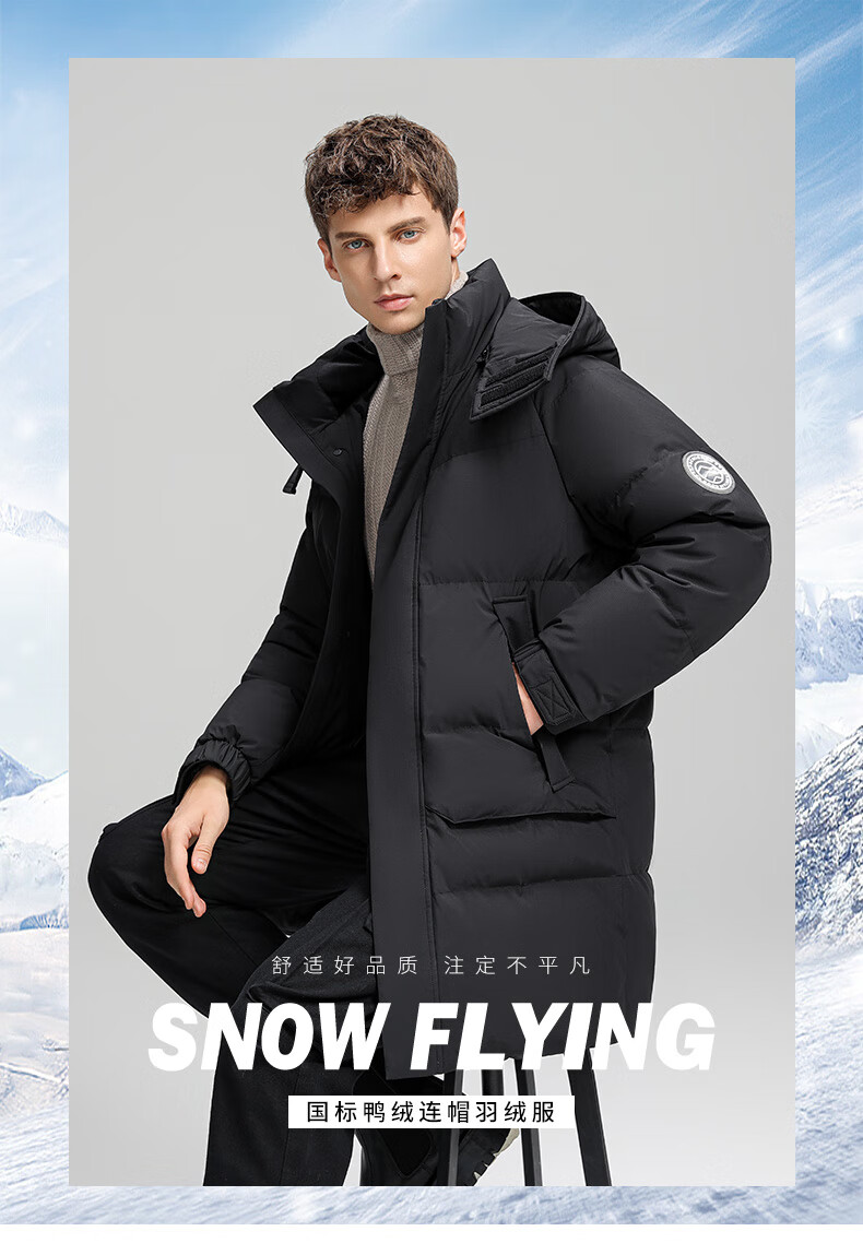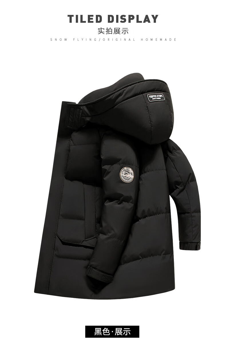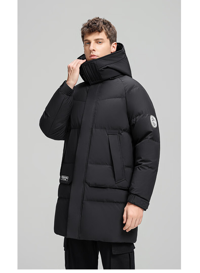 Snow Flying 90 пуховик на утином пуху со съемным капюшоном, мужская осенне-зимняя деловая повседневная куртка средней длины, черная 185/XXL