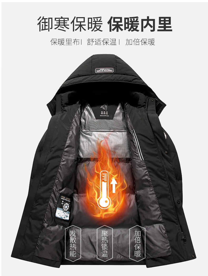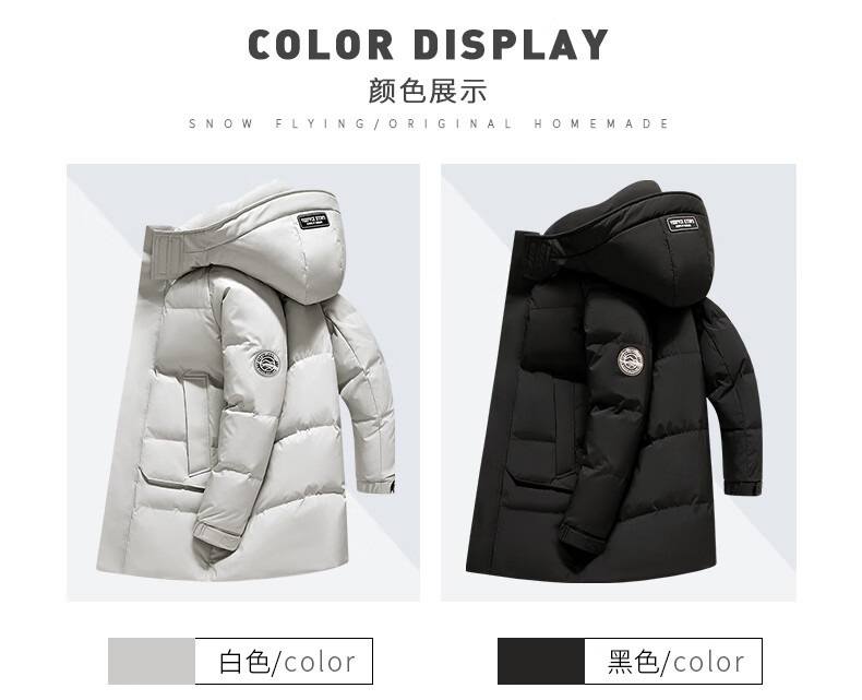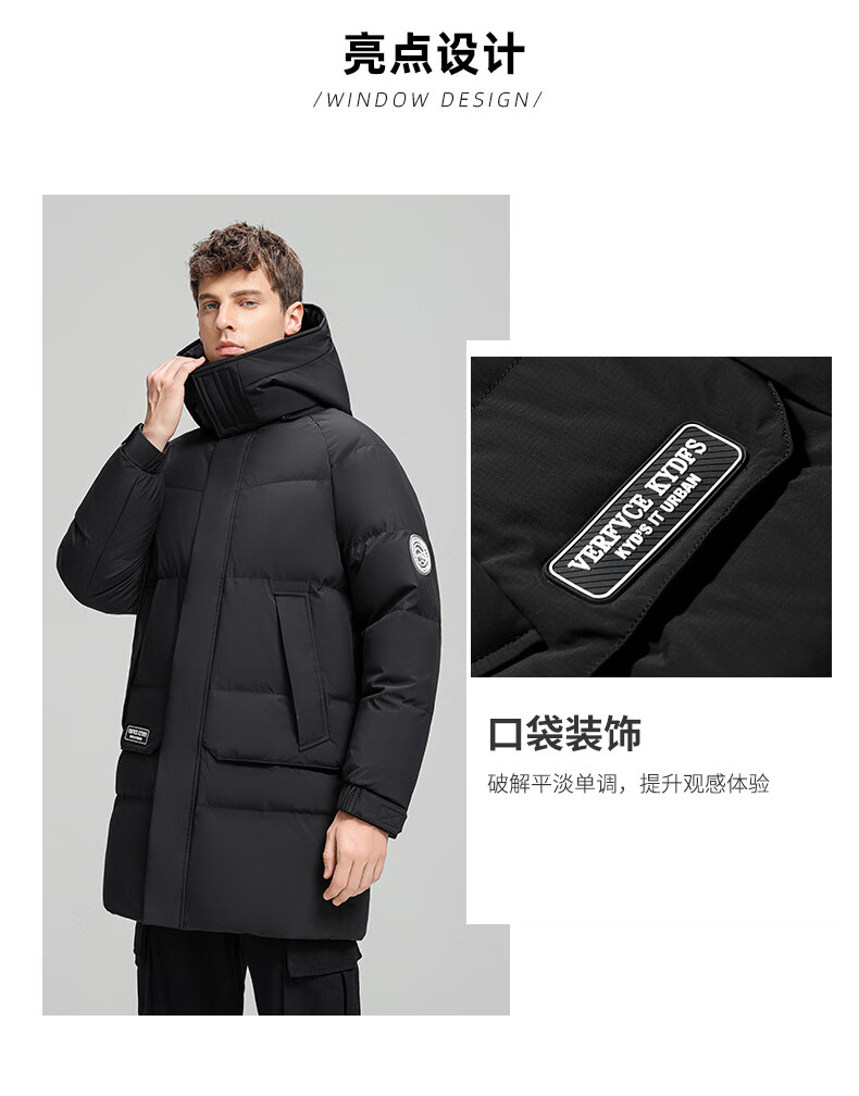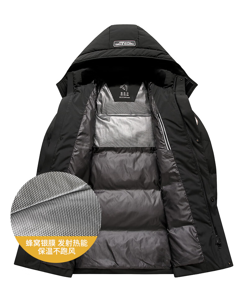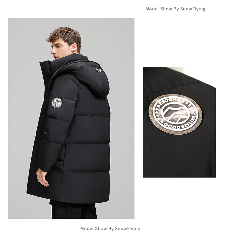 Snow Flying 90 пуховик на утином пуху со съемным капюшоном, мужская осенне-зимняя деловая повседневная куртка средней длины, черная 185/XXL