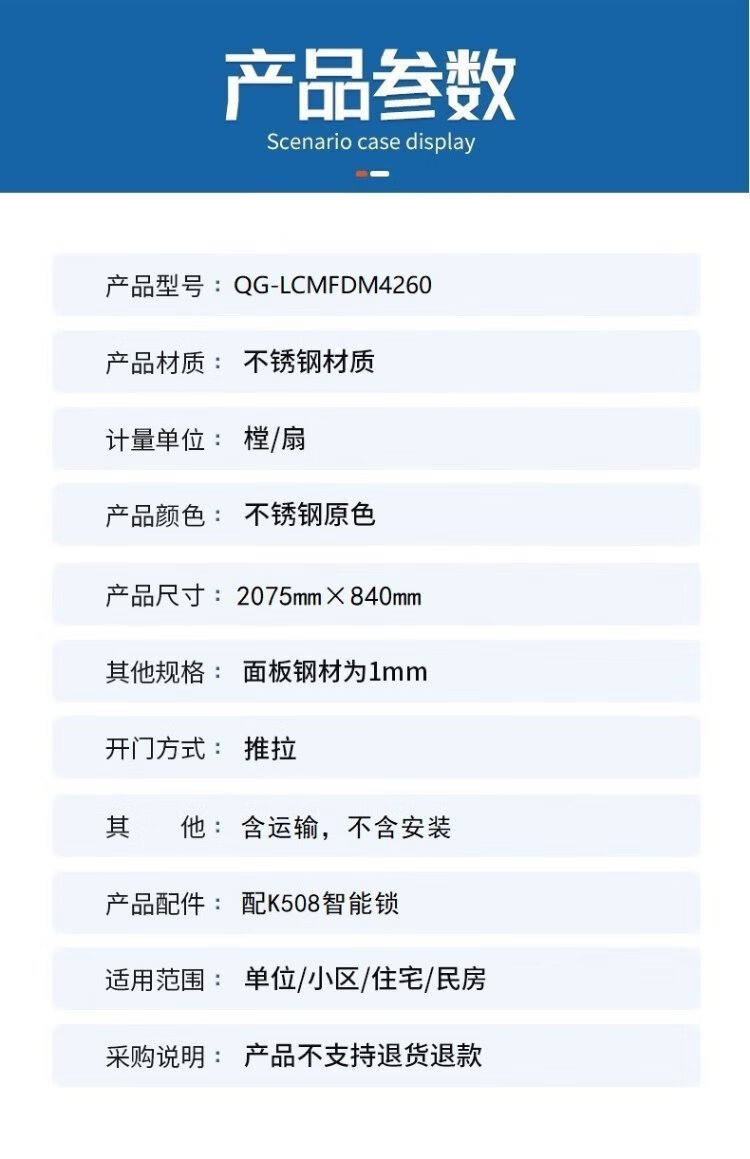 启功不锈钢防盗门单位小区住宅民房入户含智能锁QG-LCMFDM4260