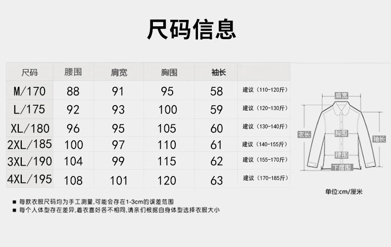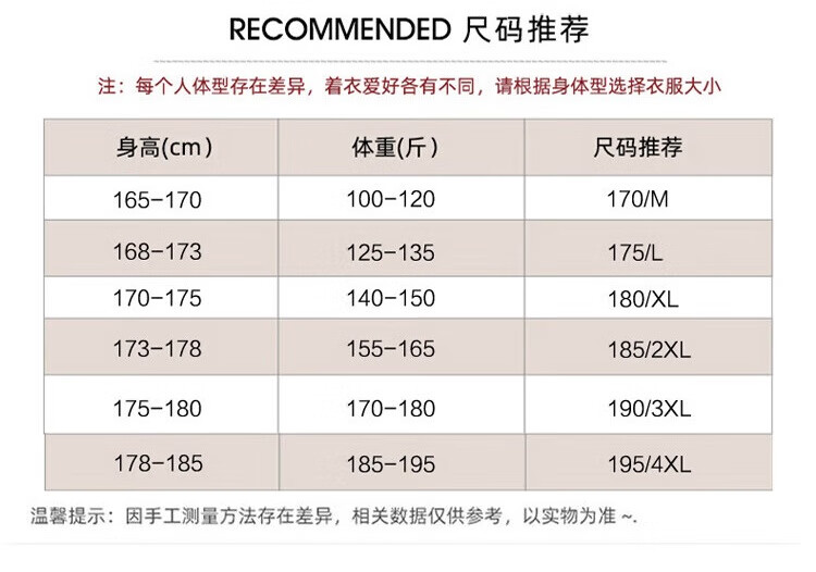 China (cm) 165 / 88-90 170 / 96-98 175 / 108-110 180 / 118-122 185 / 126-130