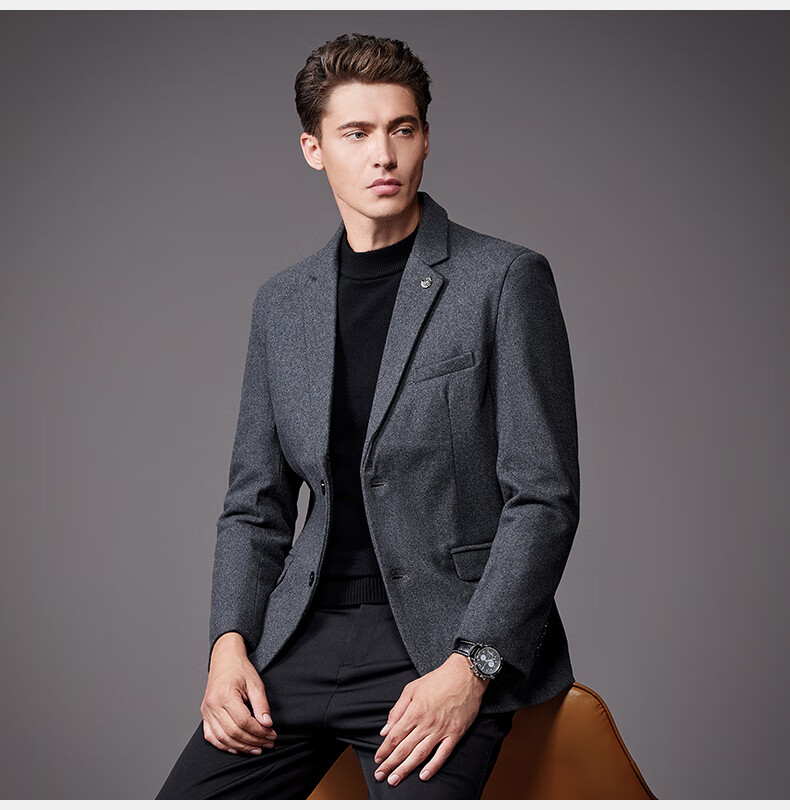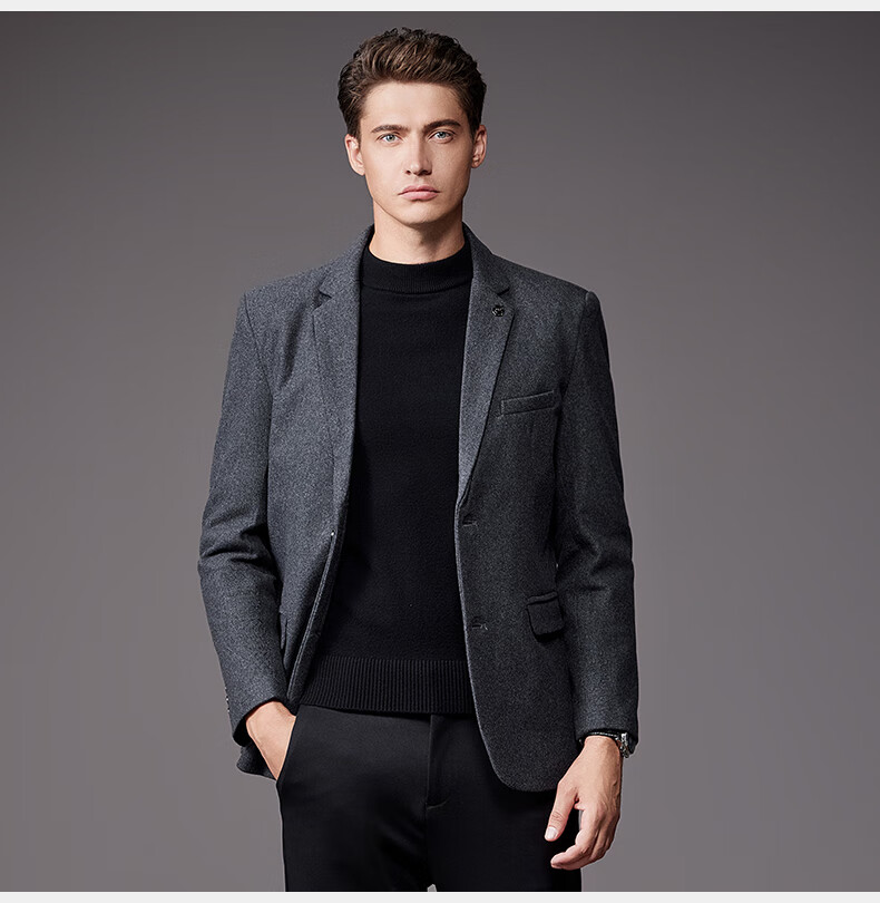 罗蒙(ROMON)羊毛呢西服男士秋冬商务休闲职业正装西装礼服爸爸外套XF78灰色2X