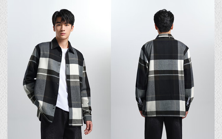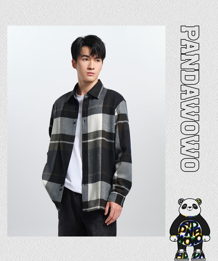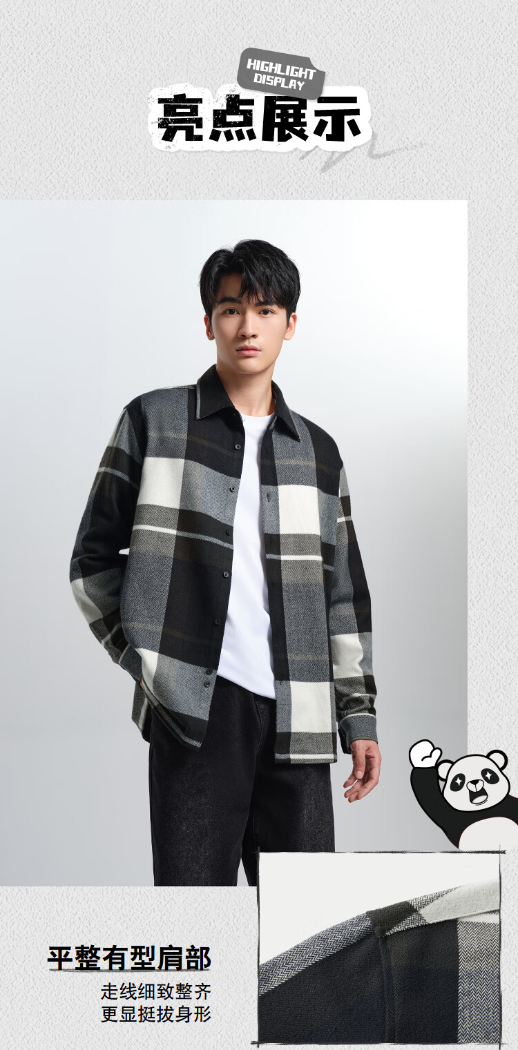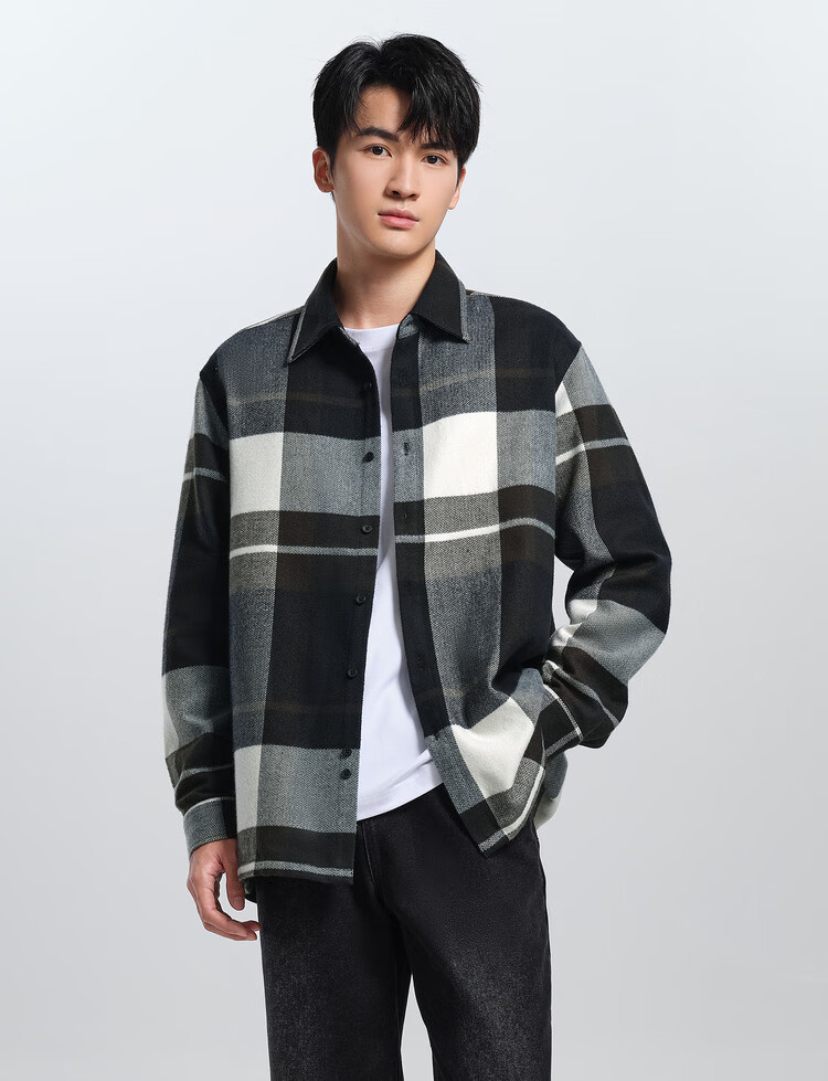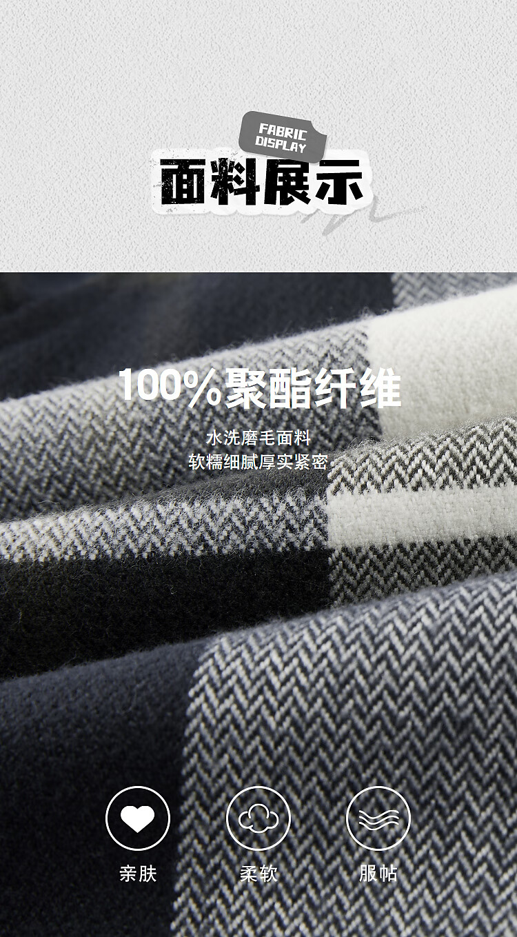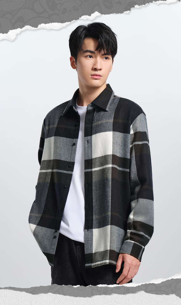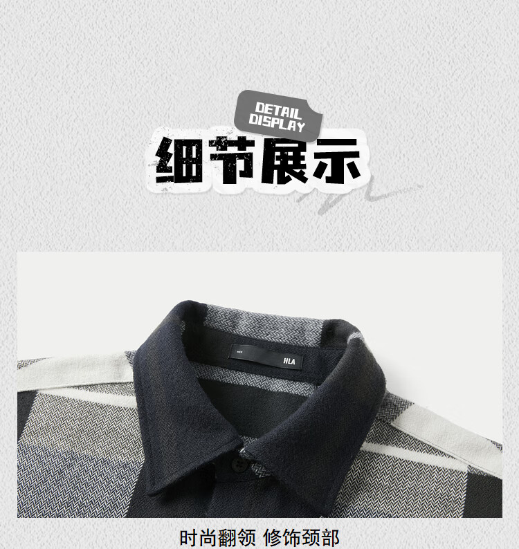 HLA海澜之家长袖衬衫男冬季宽松磨毛格子休闲衬衣男