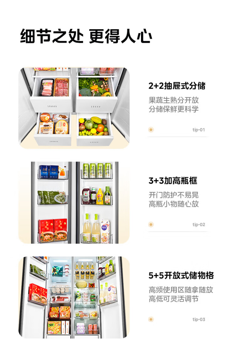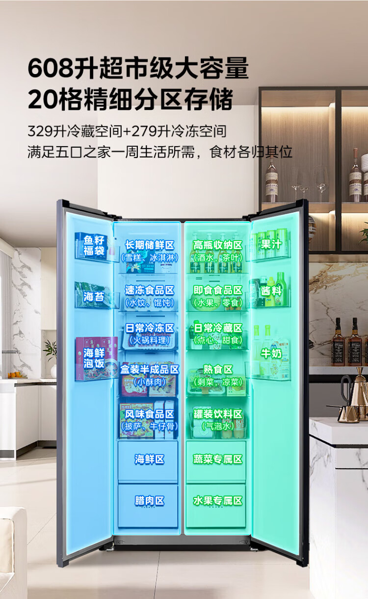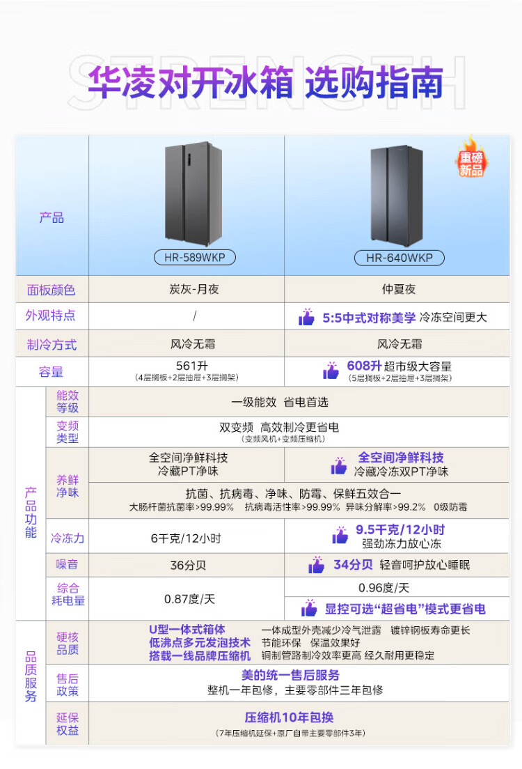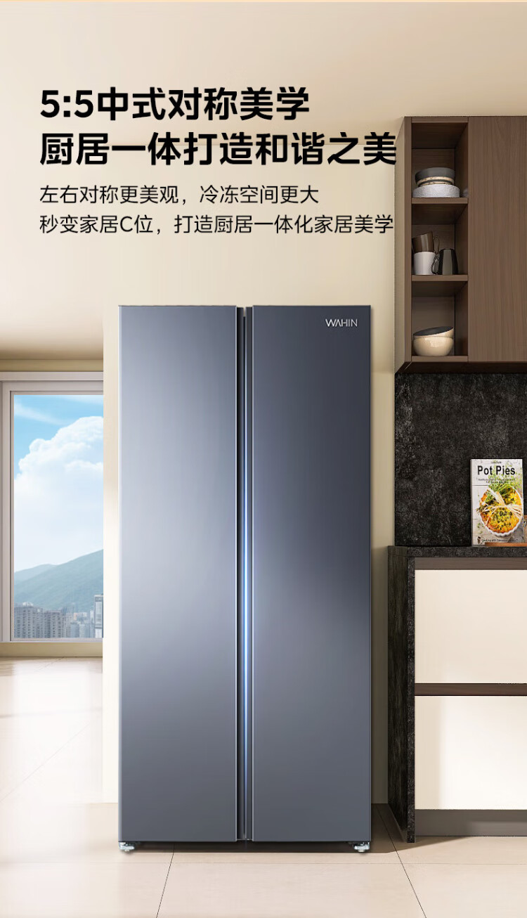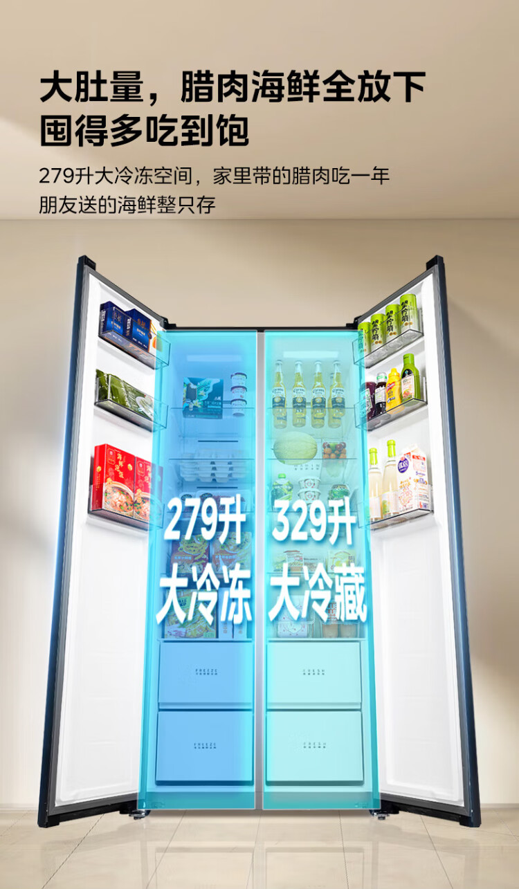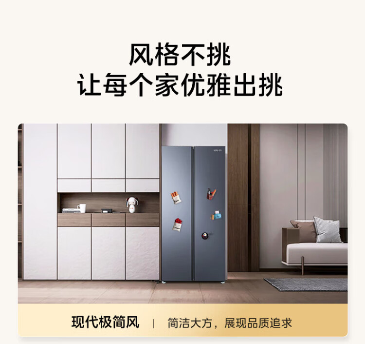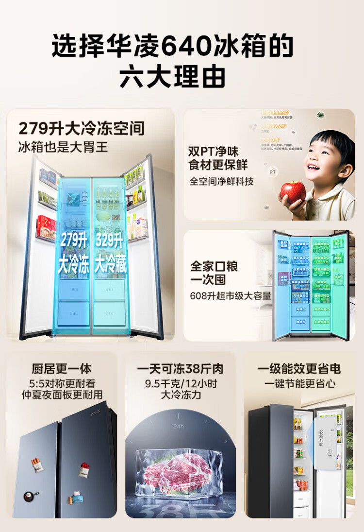 Produced by Hualingmei, the state subsidizes 20% large-capacity double-door side-by-side first-class energy-efficient air-cooled frost-free energy-saving household ultra-thin refrigerator HR-640WKP
