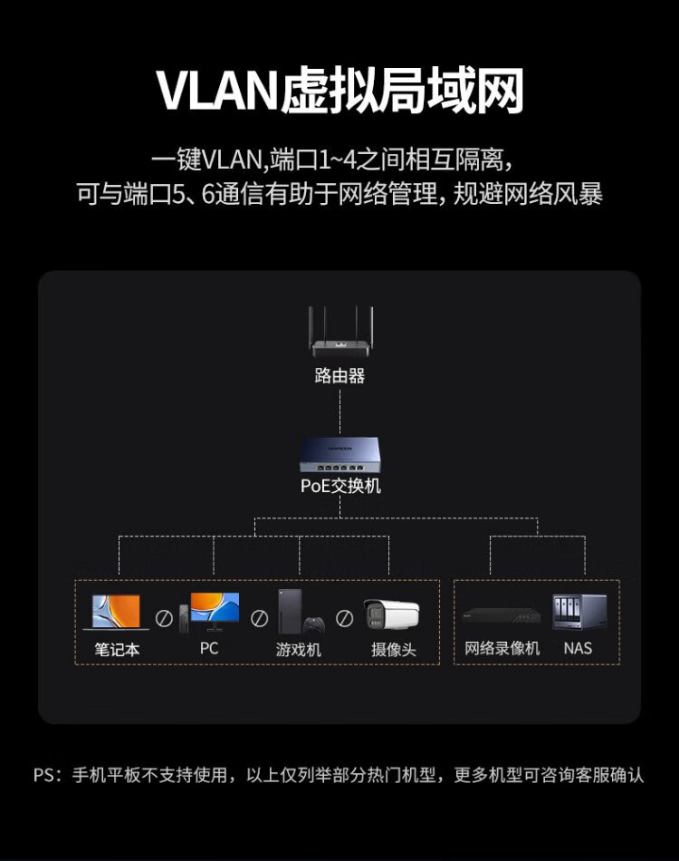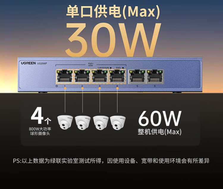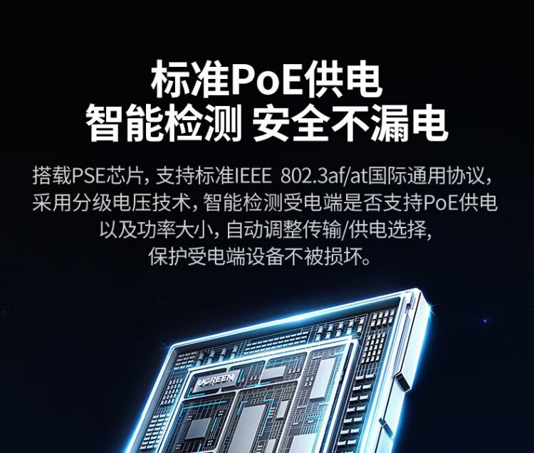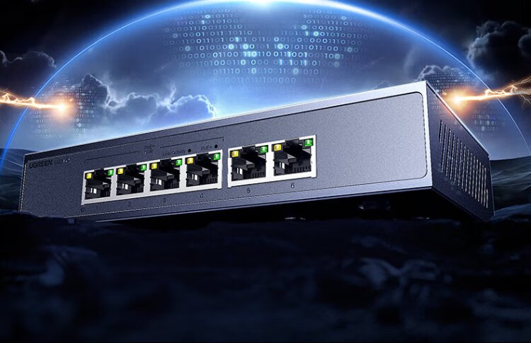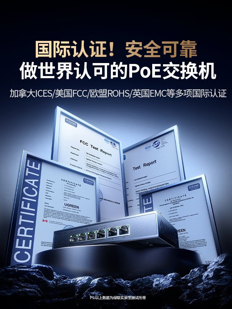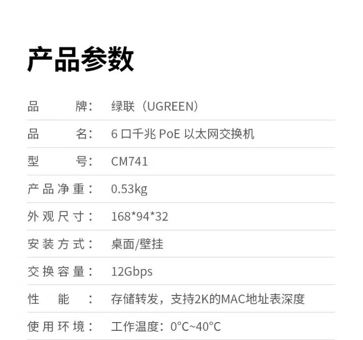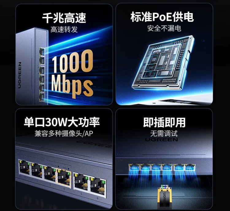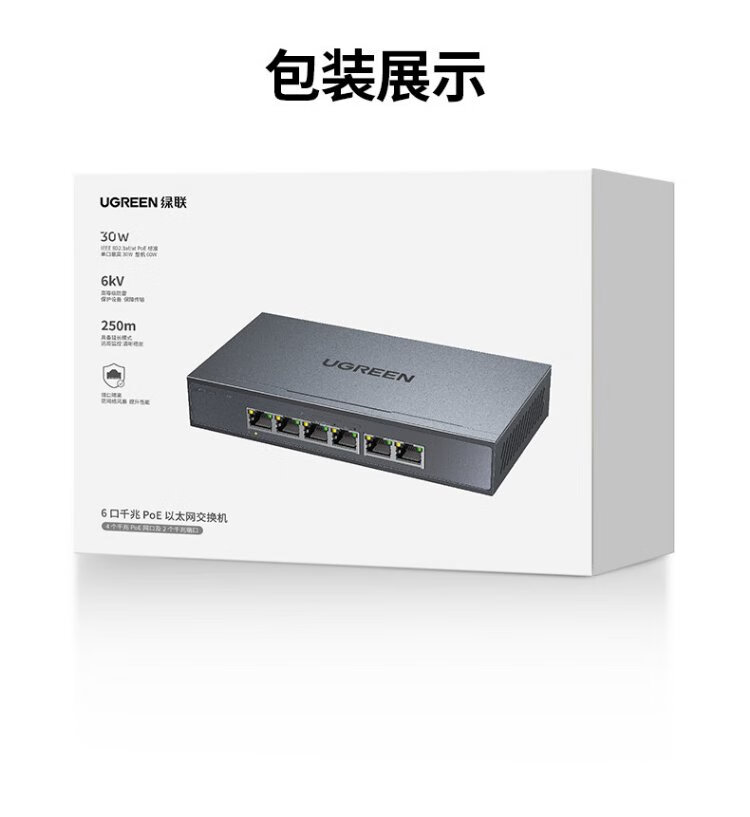 绿联4口标准poe交换机6口千兆供电 家用摄像头监控网络网线分线转换器 双上联企业交换器分流器35371