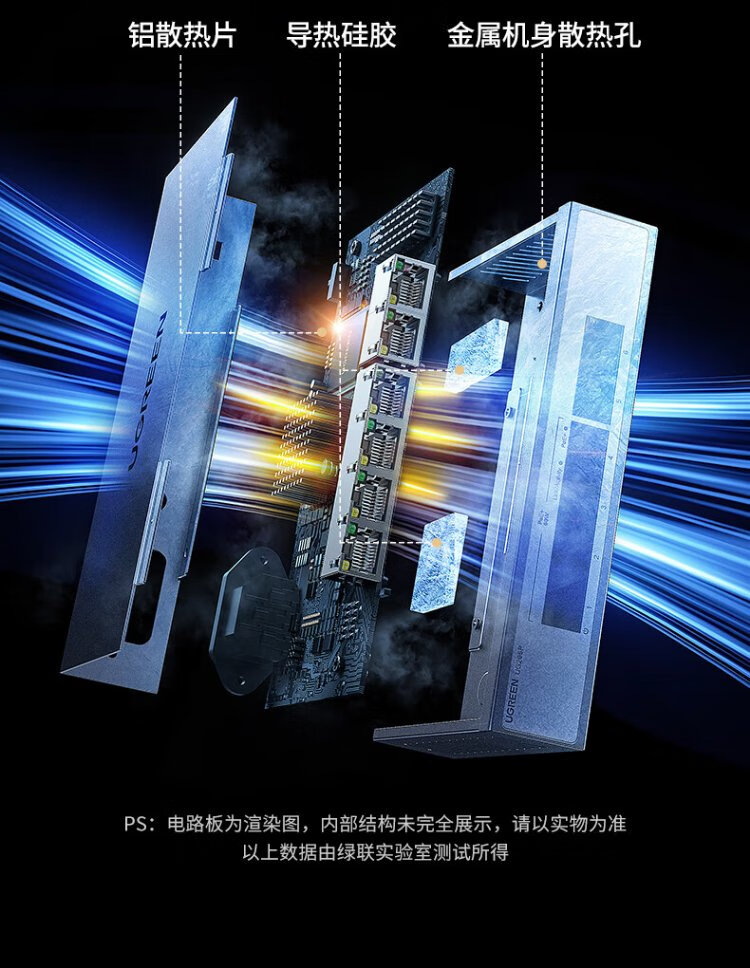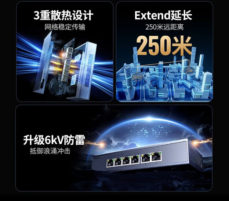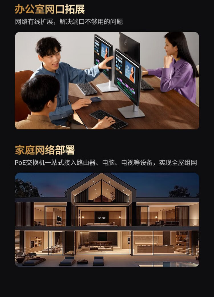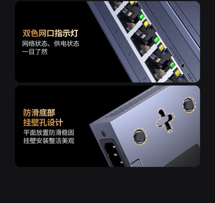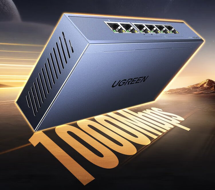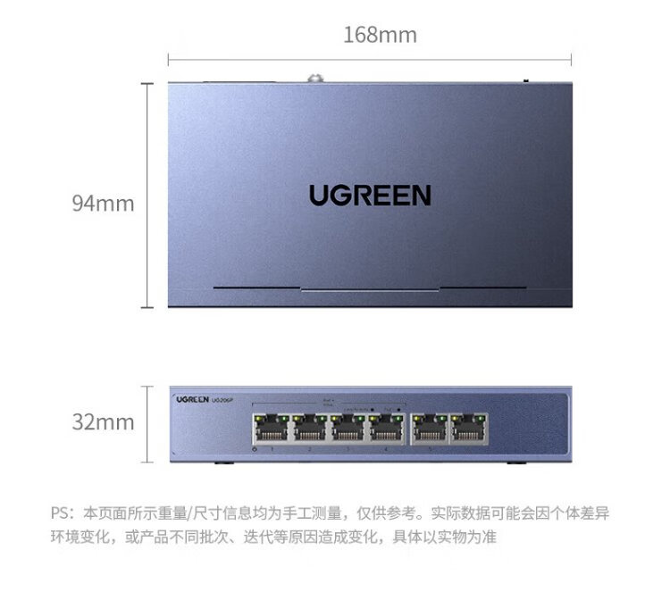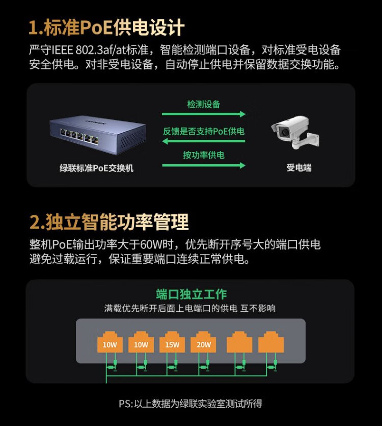 绿联4口标准poe交换机6口千兆供电 家用摄像头监控网络网线分线转换器 双上联企业交换器分流器35371