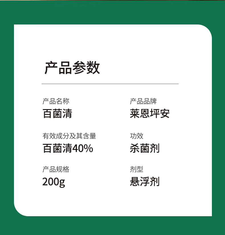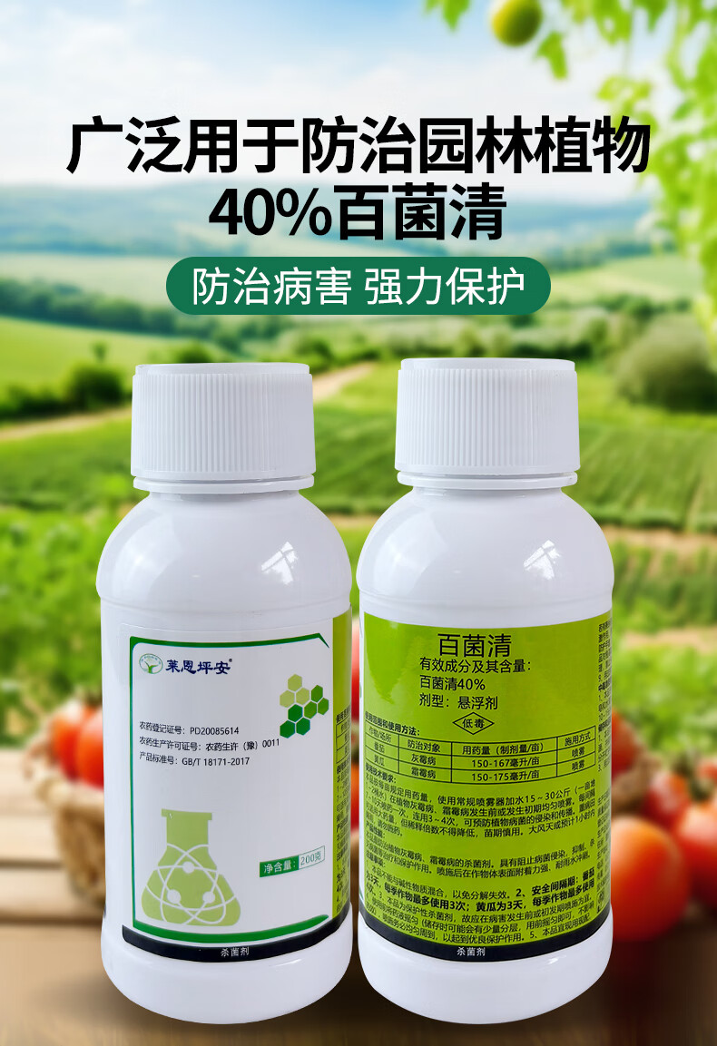 莱恩坪安40%百菌清悬浮剂果树花卉蔬菜叶斑病炭疽病白粉病通用农药杀菌剂