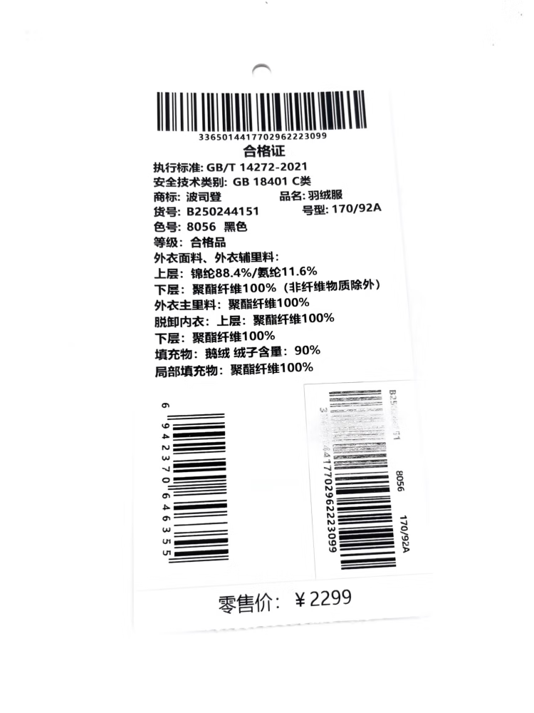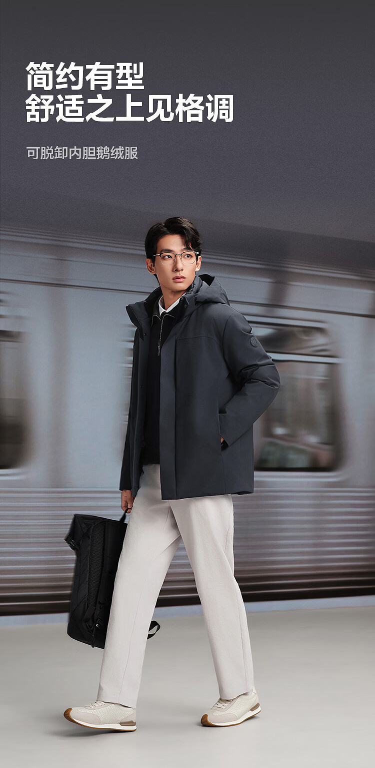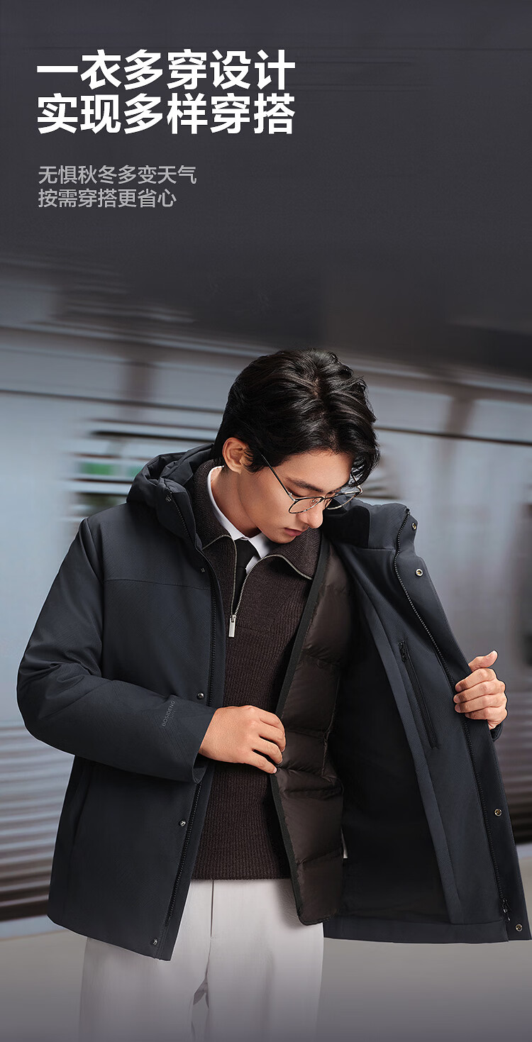 Bosideng down jacket, goose down, men's business thickened removable hooded jacket, hot sale in the mall, same style B250244151