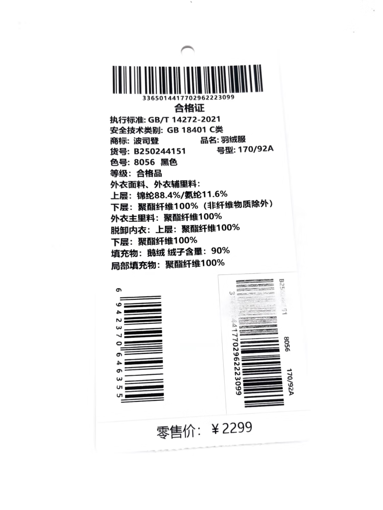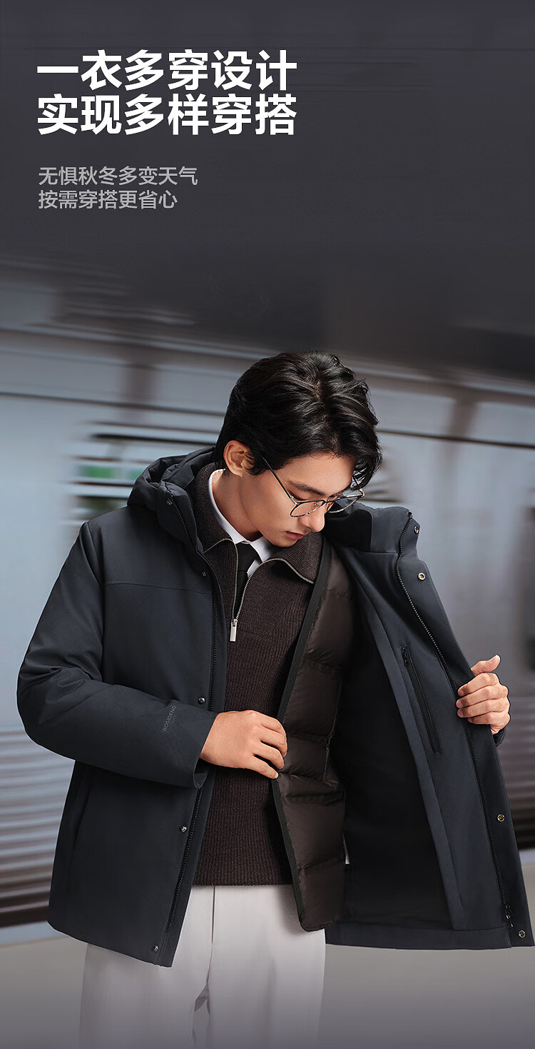 Пуховик Bosideng, гусиный пух, мужская деловая утолщенная куртка со съемным капюшоном, горячая распродажа в торговом центре, тот же стиль B250244151