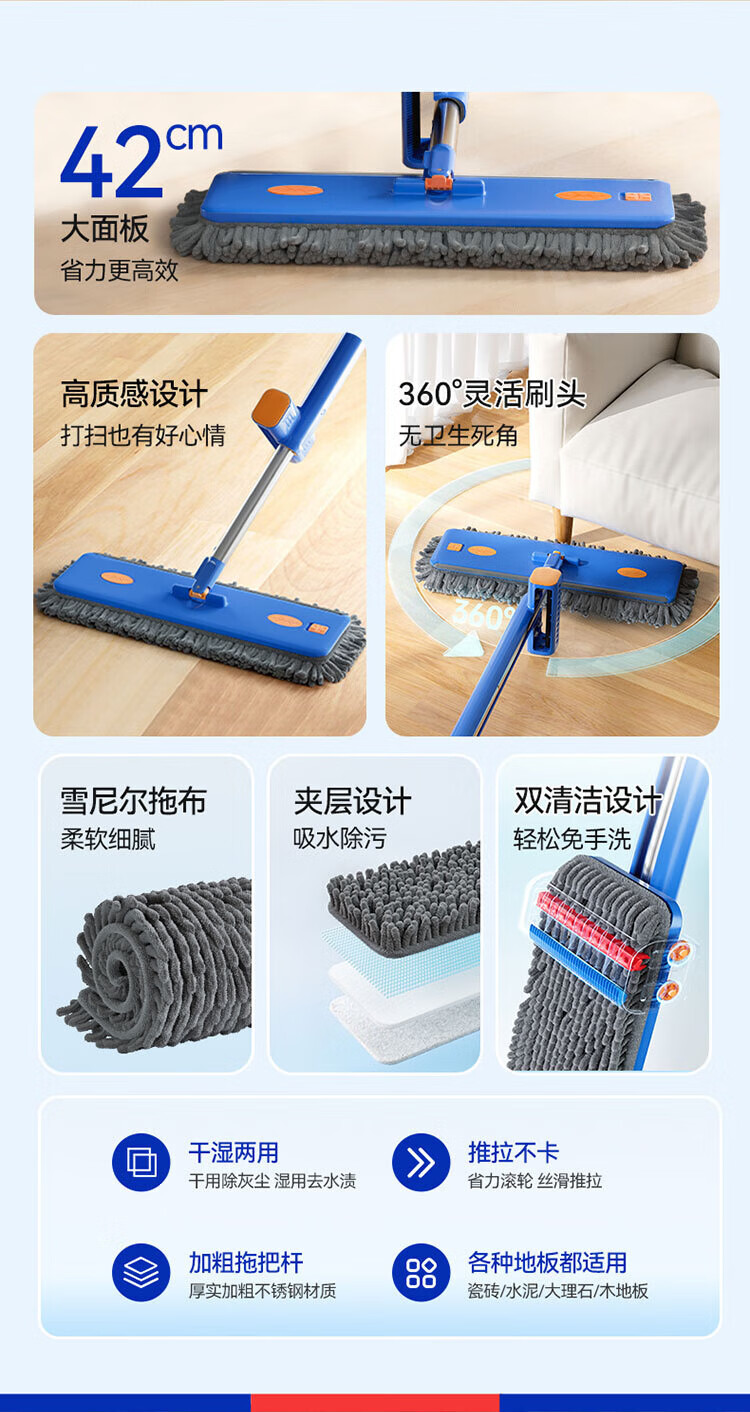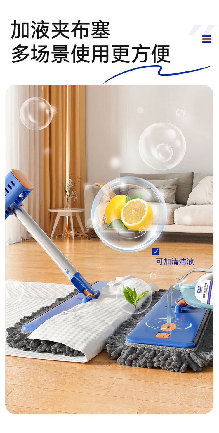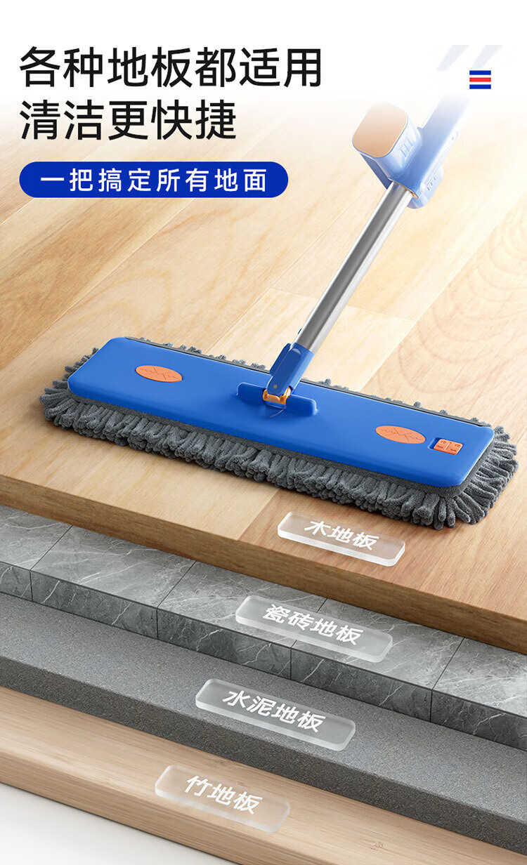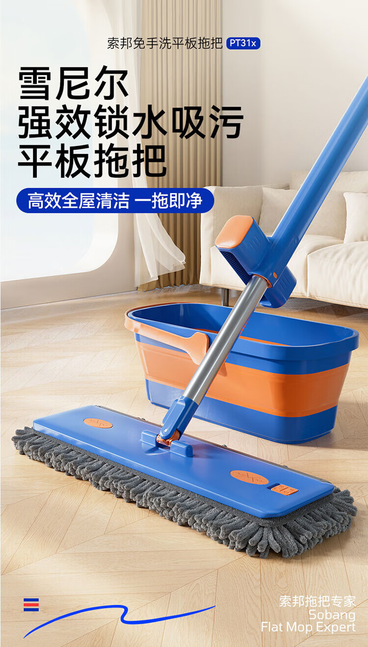 Sorbonne-Flachmopp, 42 cm, 4-Stoff-Haushalts-Einmopp, handfreier Chenille-Mopp, Wischartefakt mit Eimer-Set
