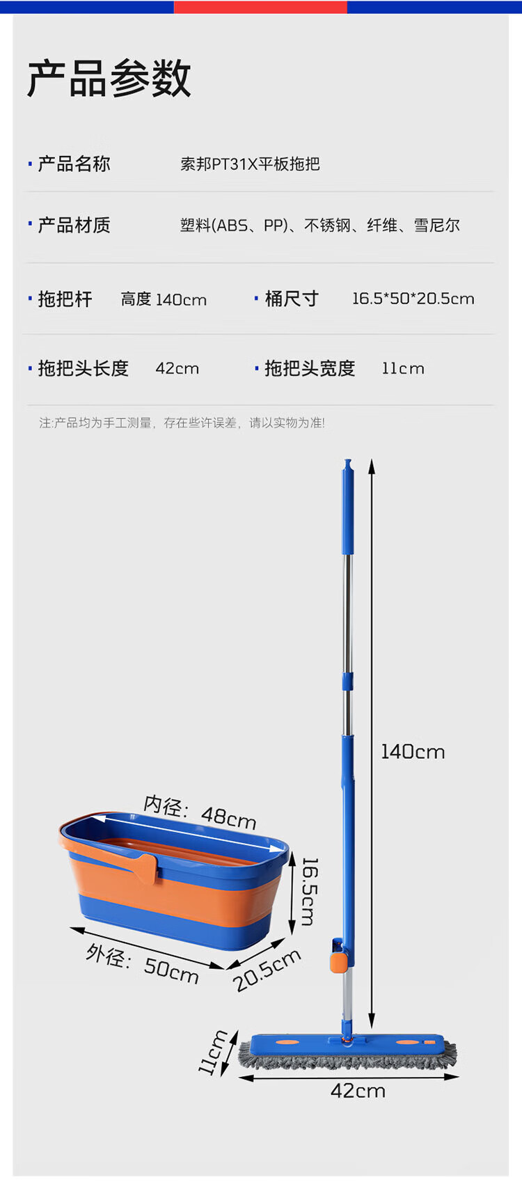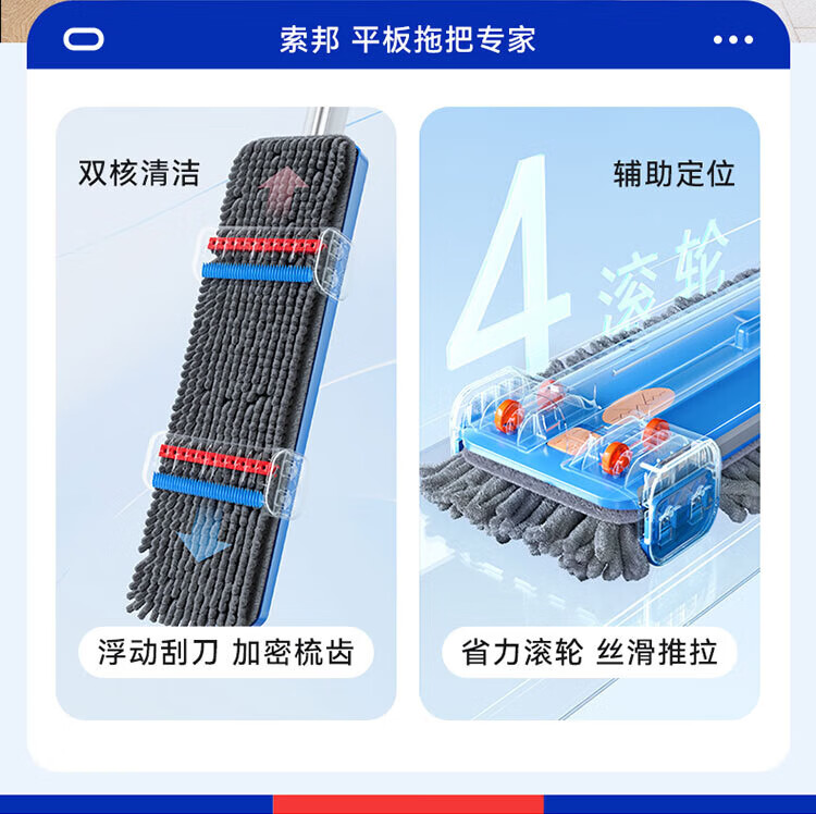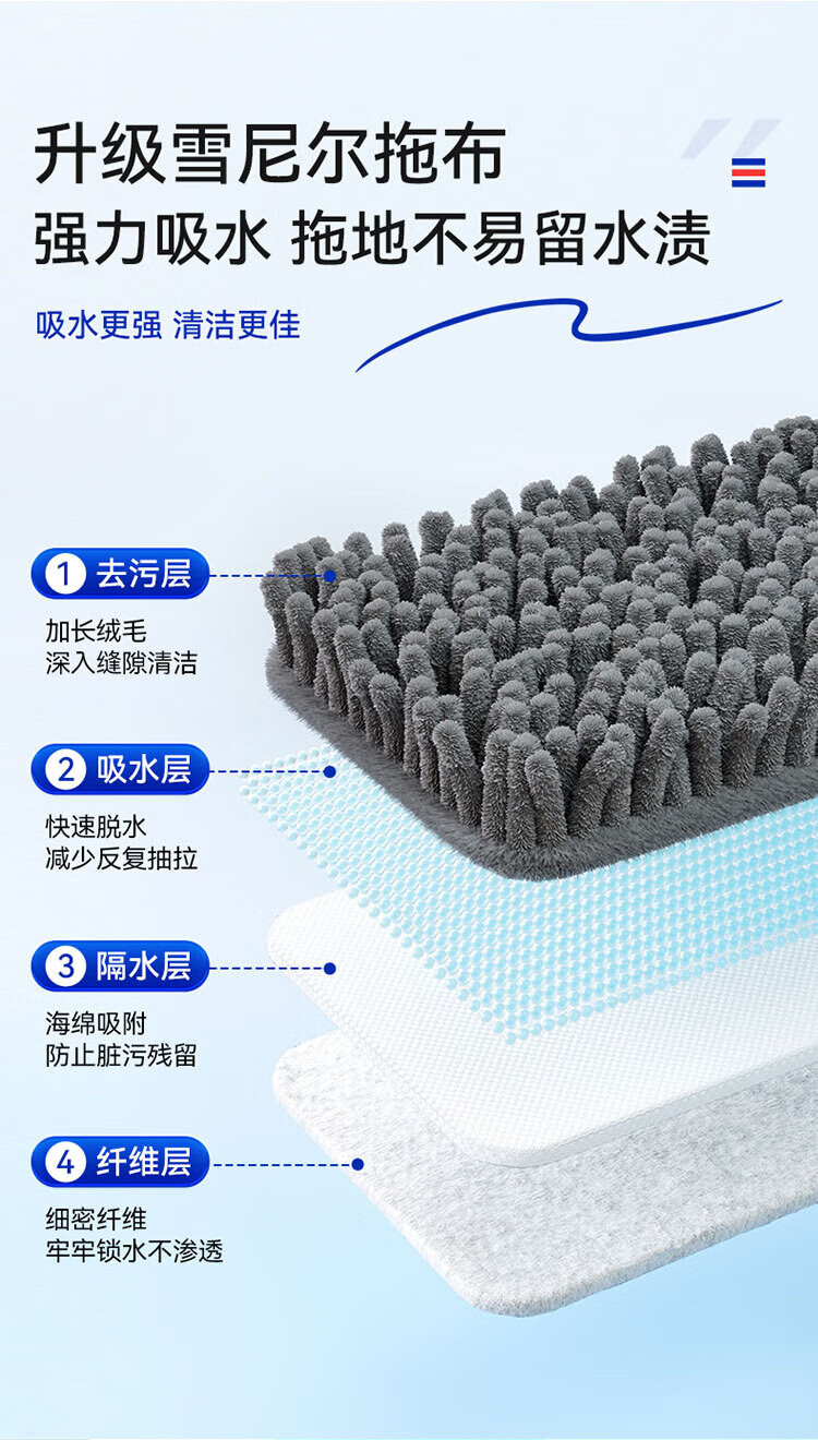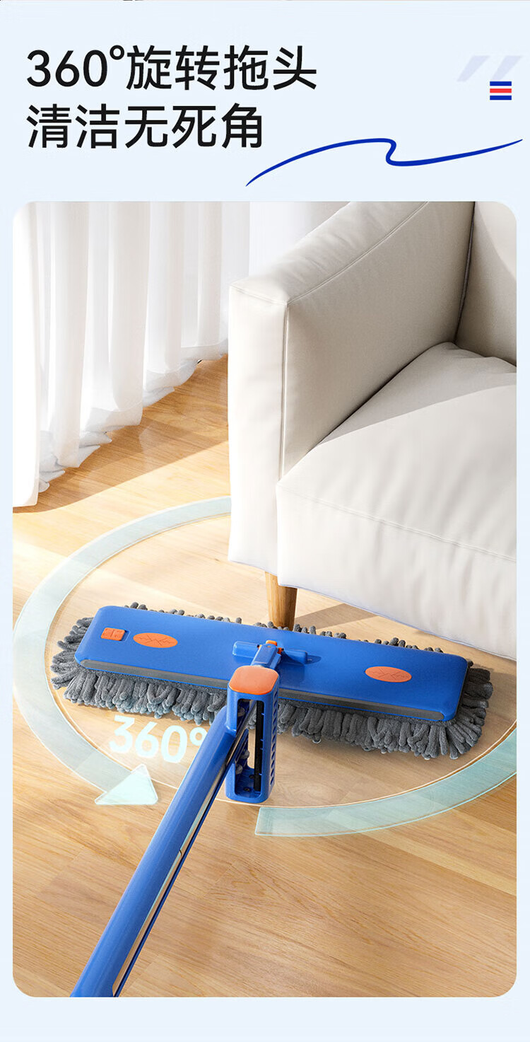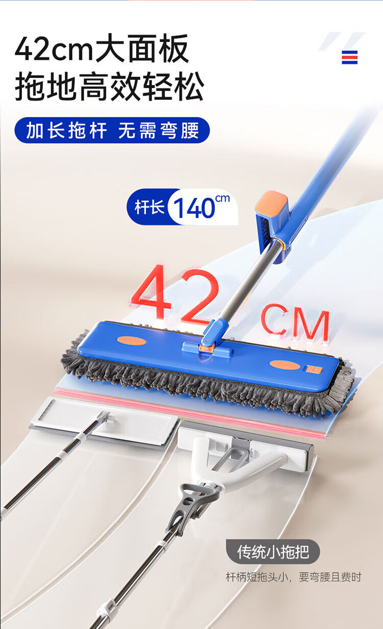 Sorbonne-Flachmopp, 42 cm, 4-Stoff-Haushalts-Einmopp, handfreier Chenille-Mopp, Wischartefakt mit Eimer-Set