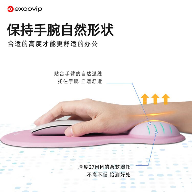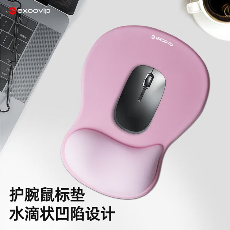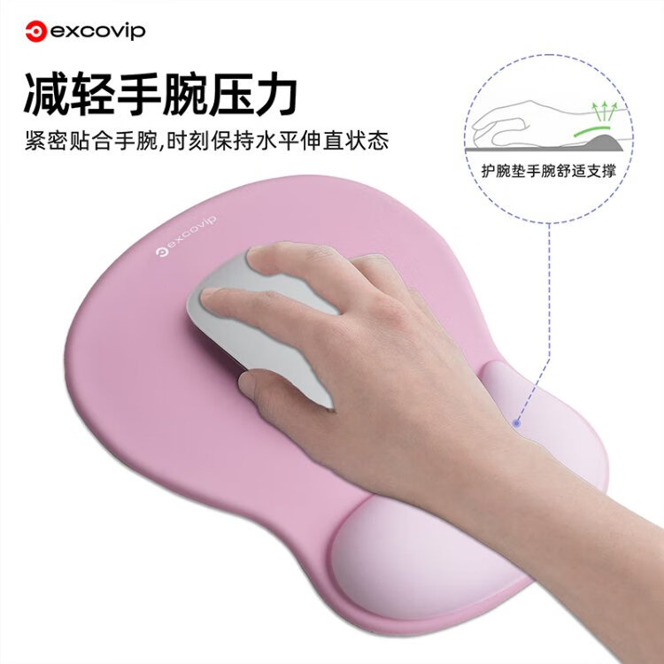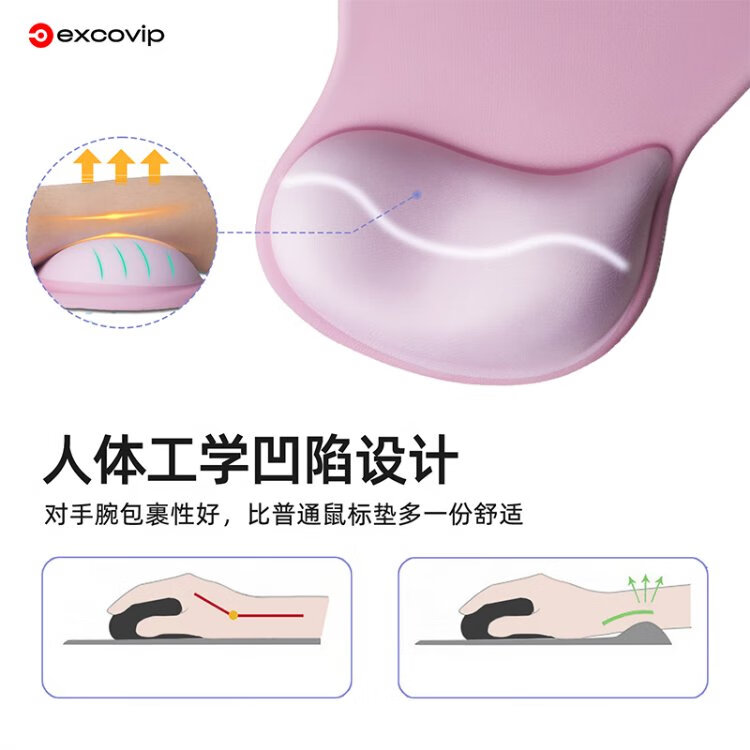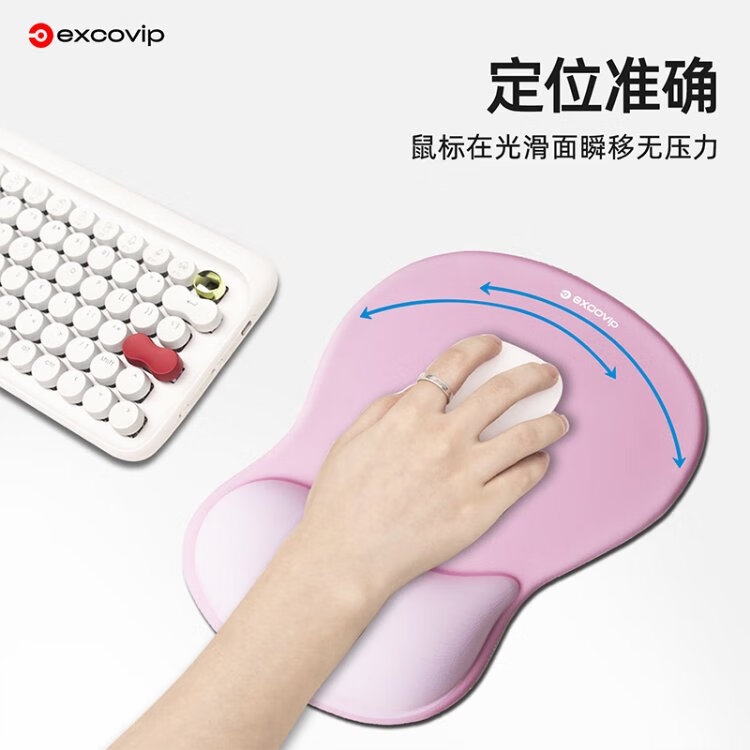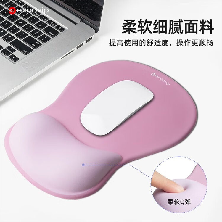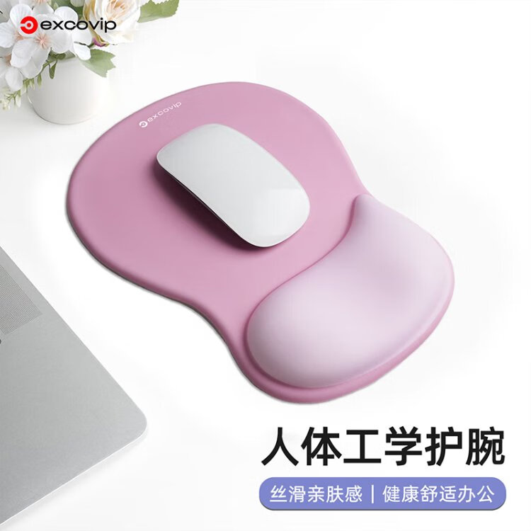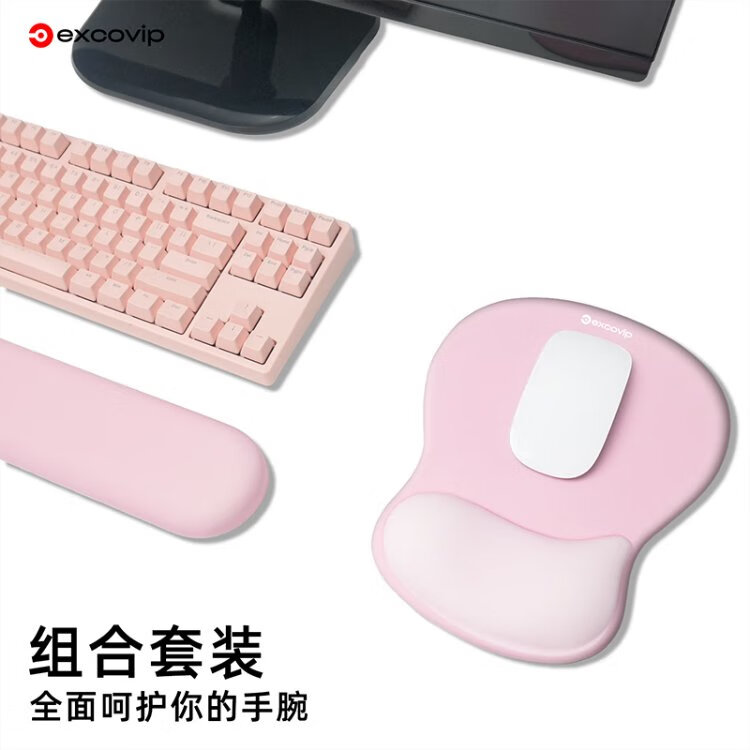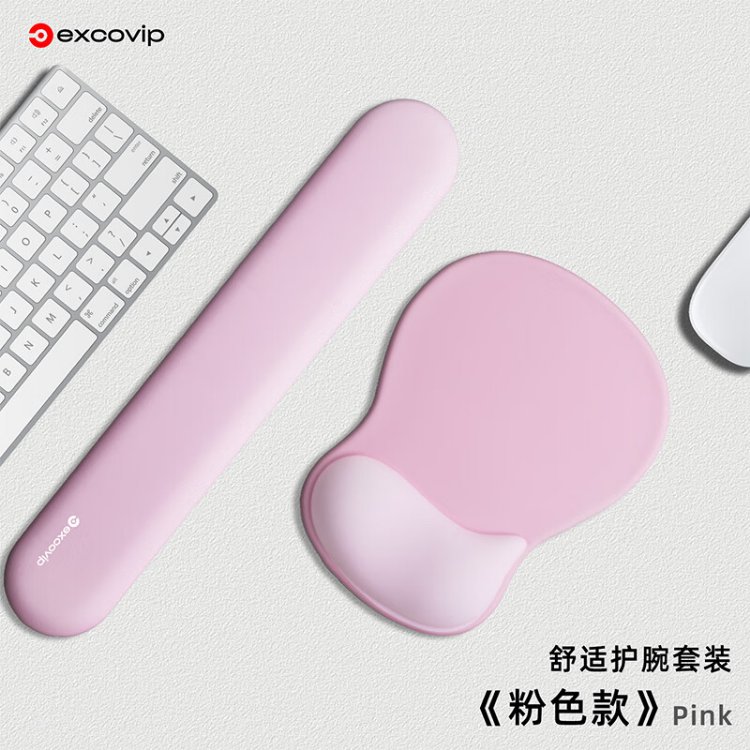 宜适酷(EXCO)键盘托鼠标垫护腕大号套装 人体工学护腕 渐变鼠标护手腕托垫子男女生硅胶防滑键盘手托粉白色0510