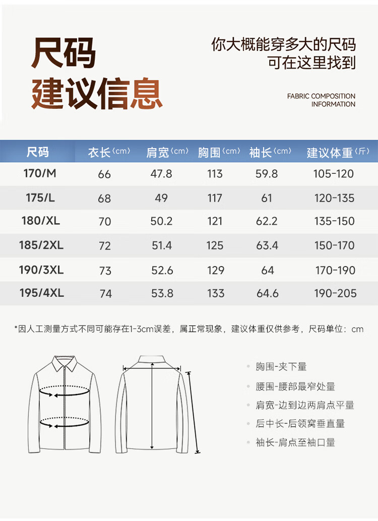 China (cm) 165 / 88-90 170 / 96-98 175 / 108-110 180 / 118-122 185 / 126-130