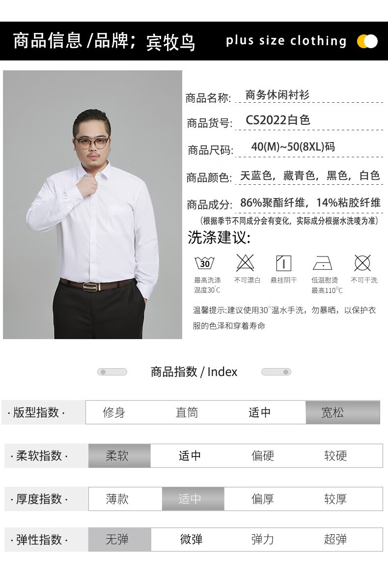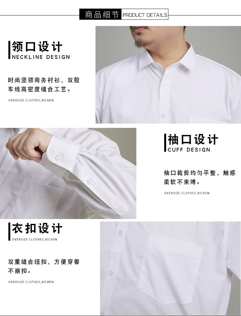 Binmuniao business fat shirt men's loose extra-large long-sleeved white shirt plus fat extra-large casual non-iron professional workwear white 3XL 44 suitable for 190-200Jin Jin equals 0.5 kg