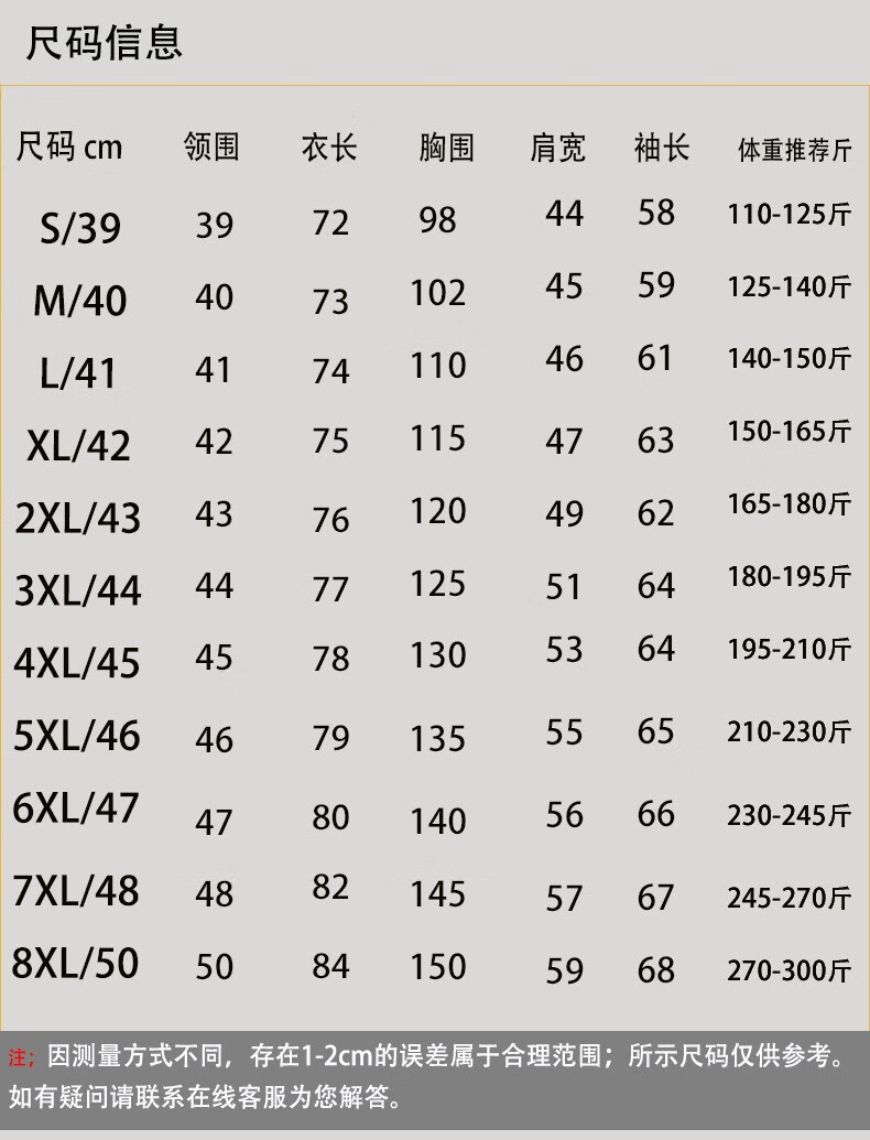 Size (cm) 42 44 46 48 50