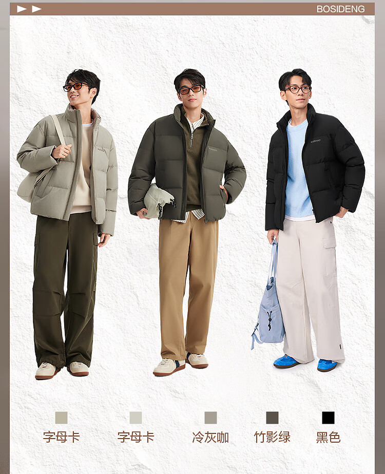 Bosideng 25 Years Winter Down Jacket Men's Slim Short Casual Thickened Stand Collar Casual Versatile Comfortable Jacket