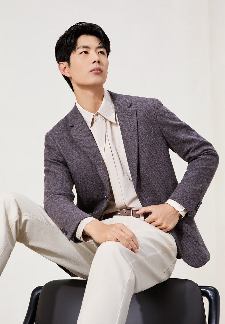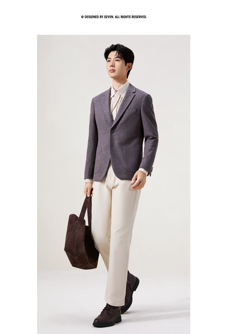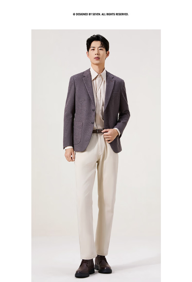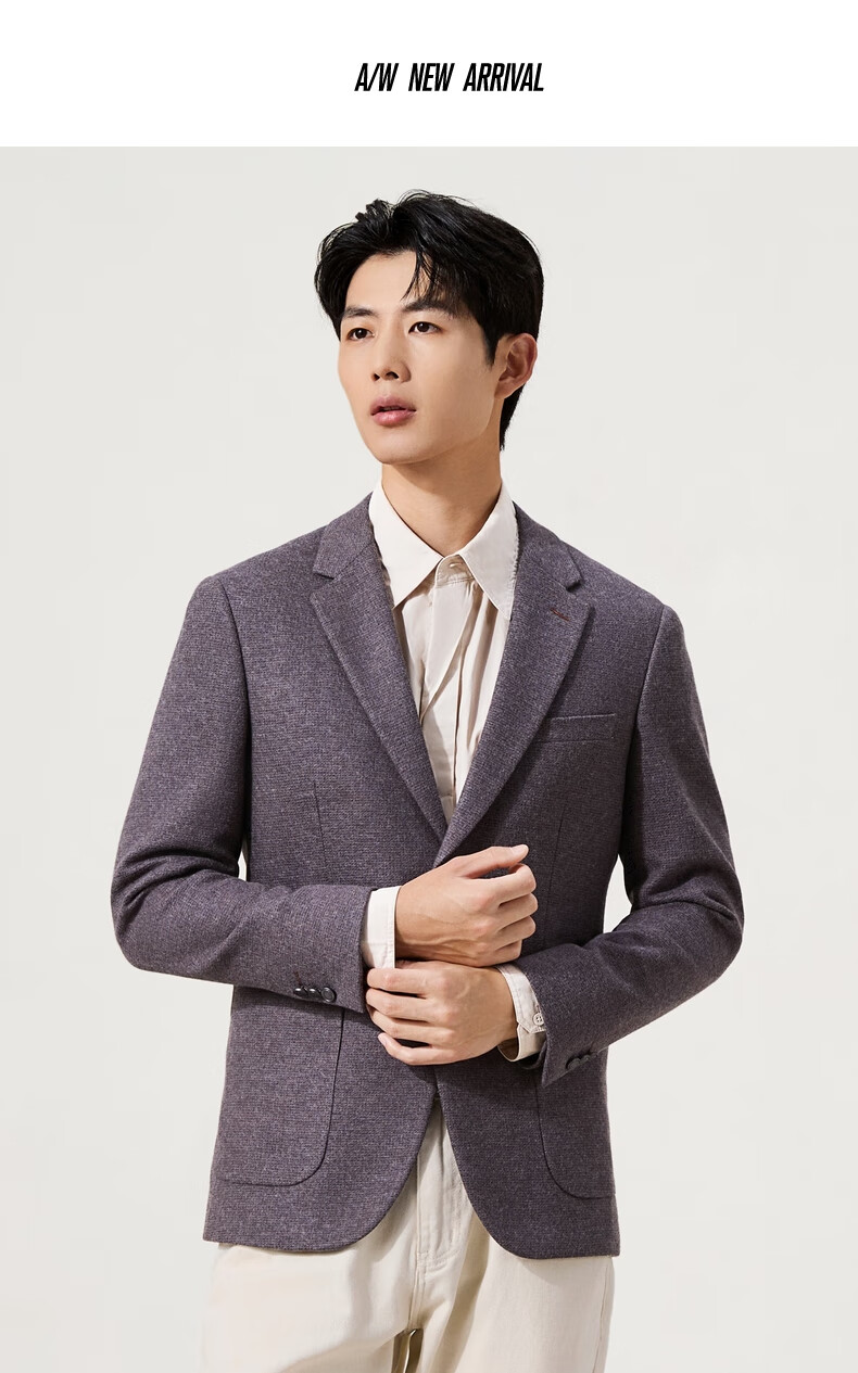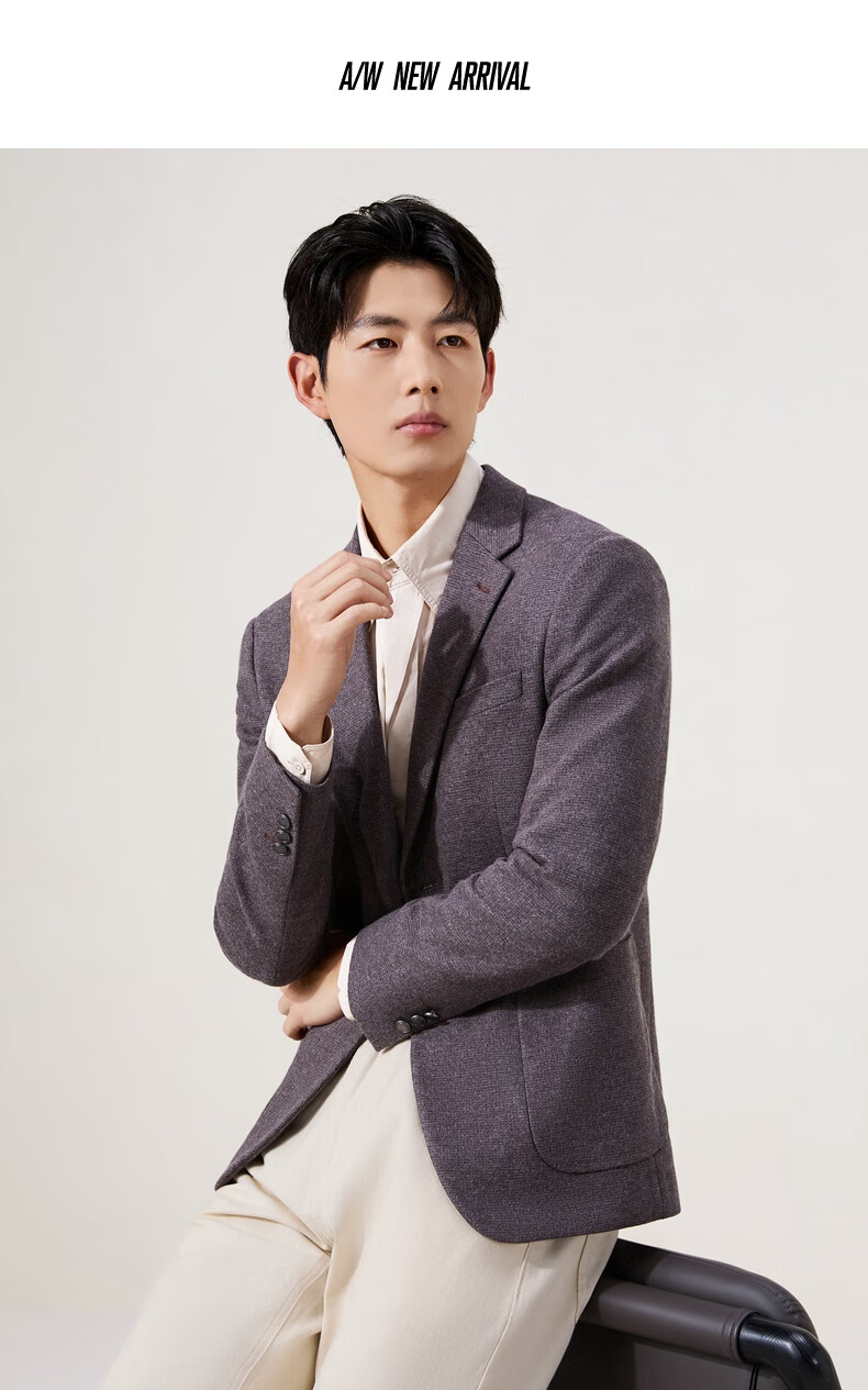 Qipai шерстяной мужской осенний жаккардовый пиджак с плоскими лацканами против морщин, осень 2025 года, для людей молодого и среднего возраста