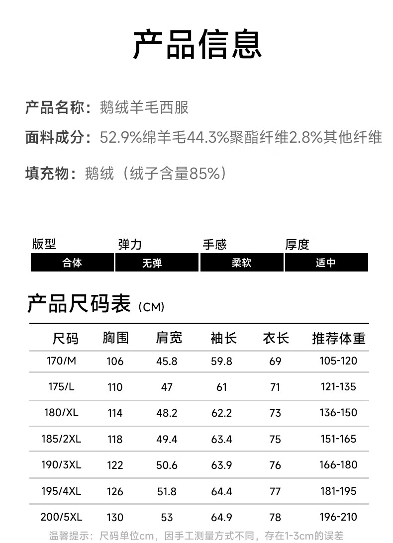 China (cm) 165 / 88-90 170 / 96-98 175 / 108-110 180 / 118-122 185 / 126-130