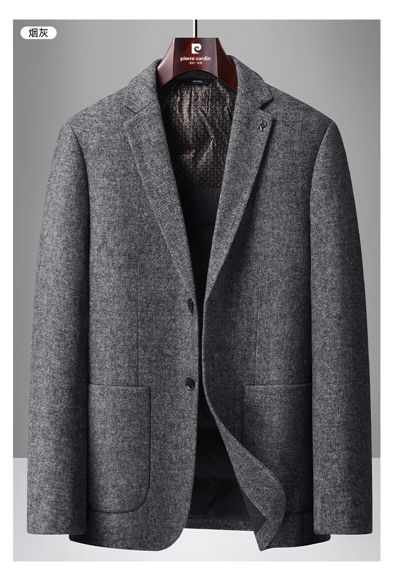 Шерстяной двусторонний твидовый костюм Pierre Cardin, мужской утепленный деловой пиджак на гусином пуху с лацканами в деловом стиле