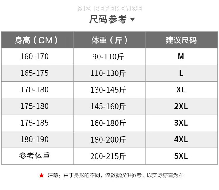 China (cm) 165 / 88-90 170 / 96-98 175 / 108-110 180 / 118-122 185 / 126-130