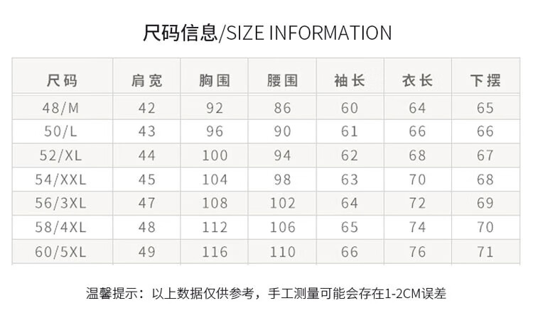 Size (cm) 42 44 46 48 50