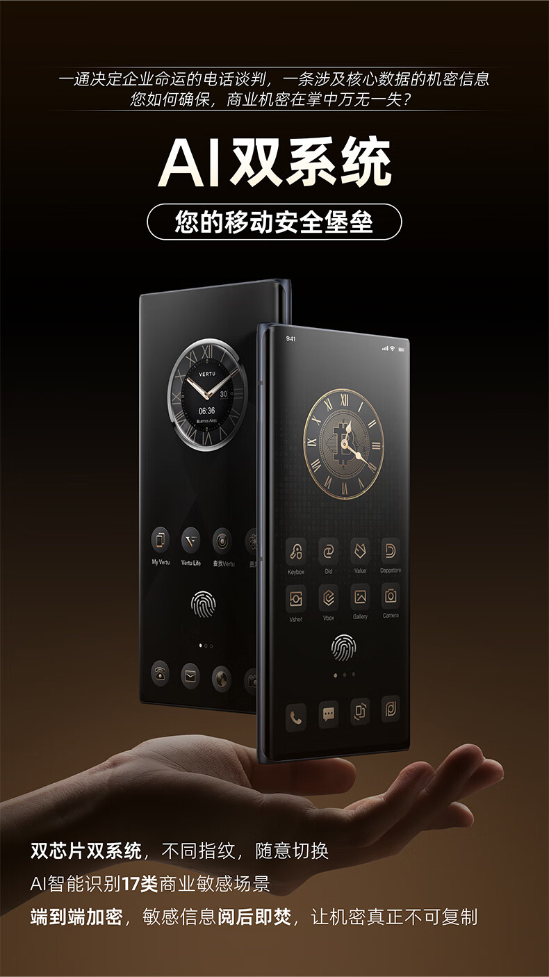 VERTU Luxury encrypted mobile phone META hyperbolic screen AI smart mobile phone 5G business high-end gift one machine dual system black carbon fiber 12GB+512GB